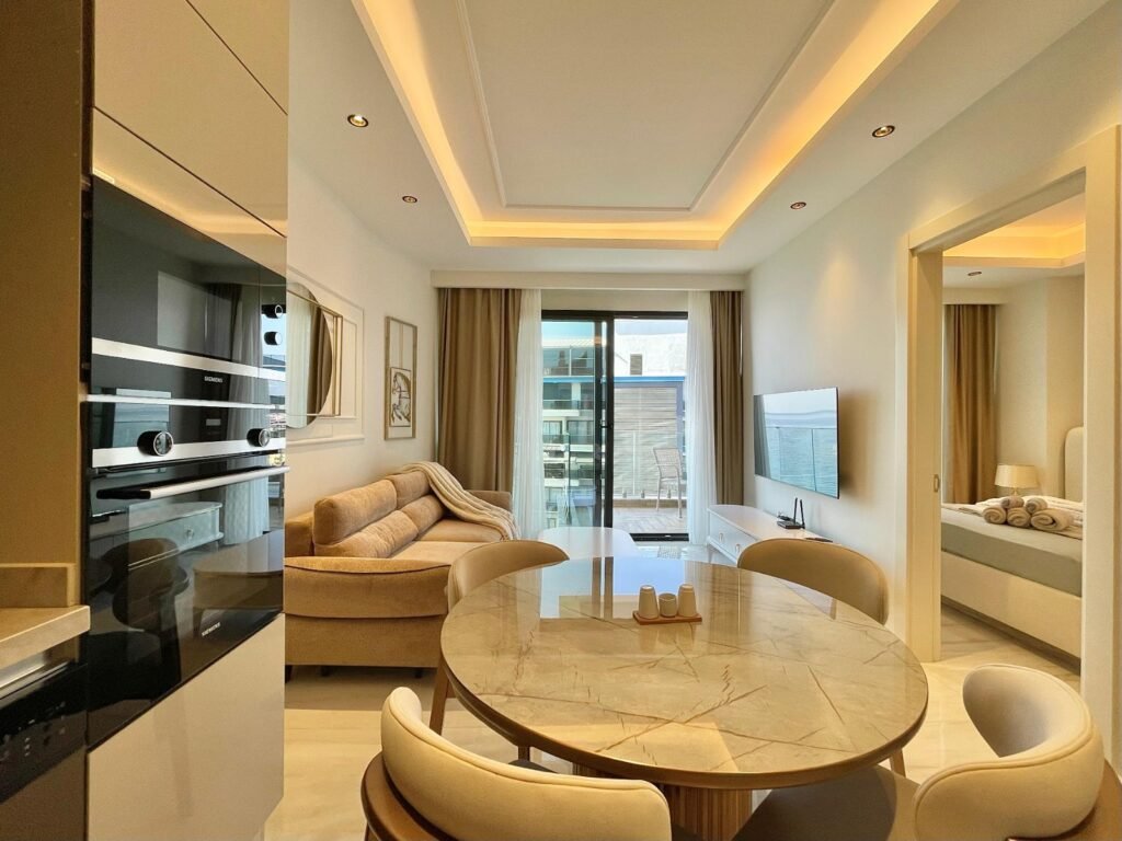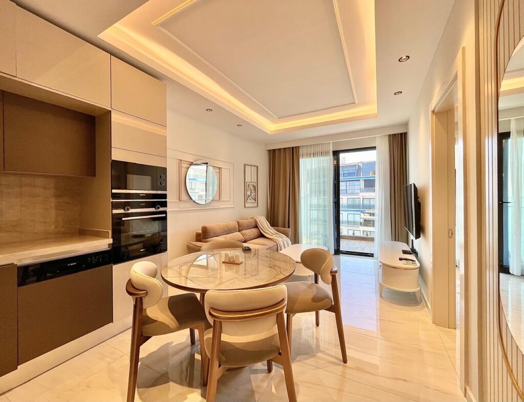 The apartments are located close to all the necessary amenities for comfortable living. Within walking distance are a large supermarket (just 50 meters from the house), a Saturday food market, pharmacies, banks, cafes, and restaurants. Also nearby are recreational parks and bus stops providing connections to anywhere in Alanya.