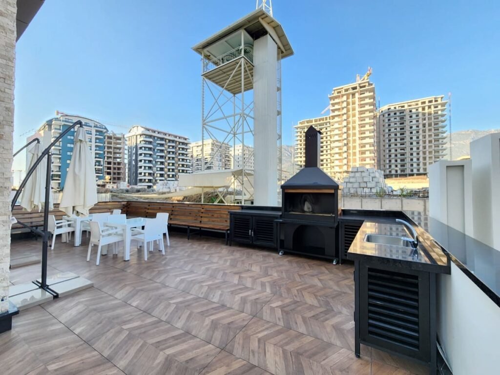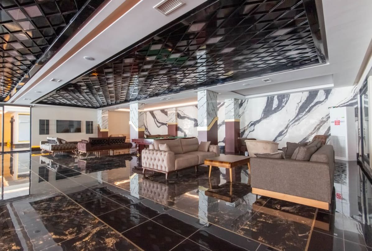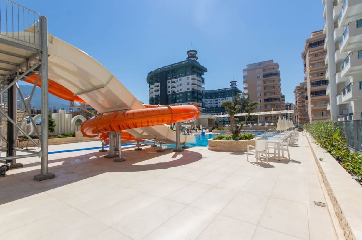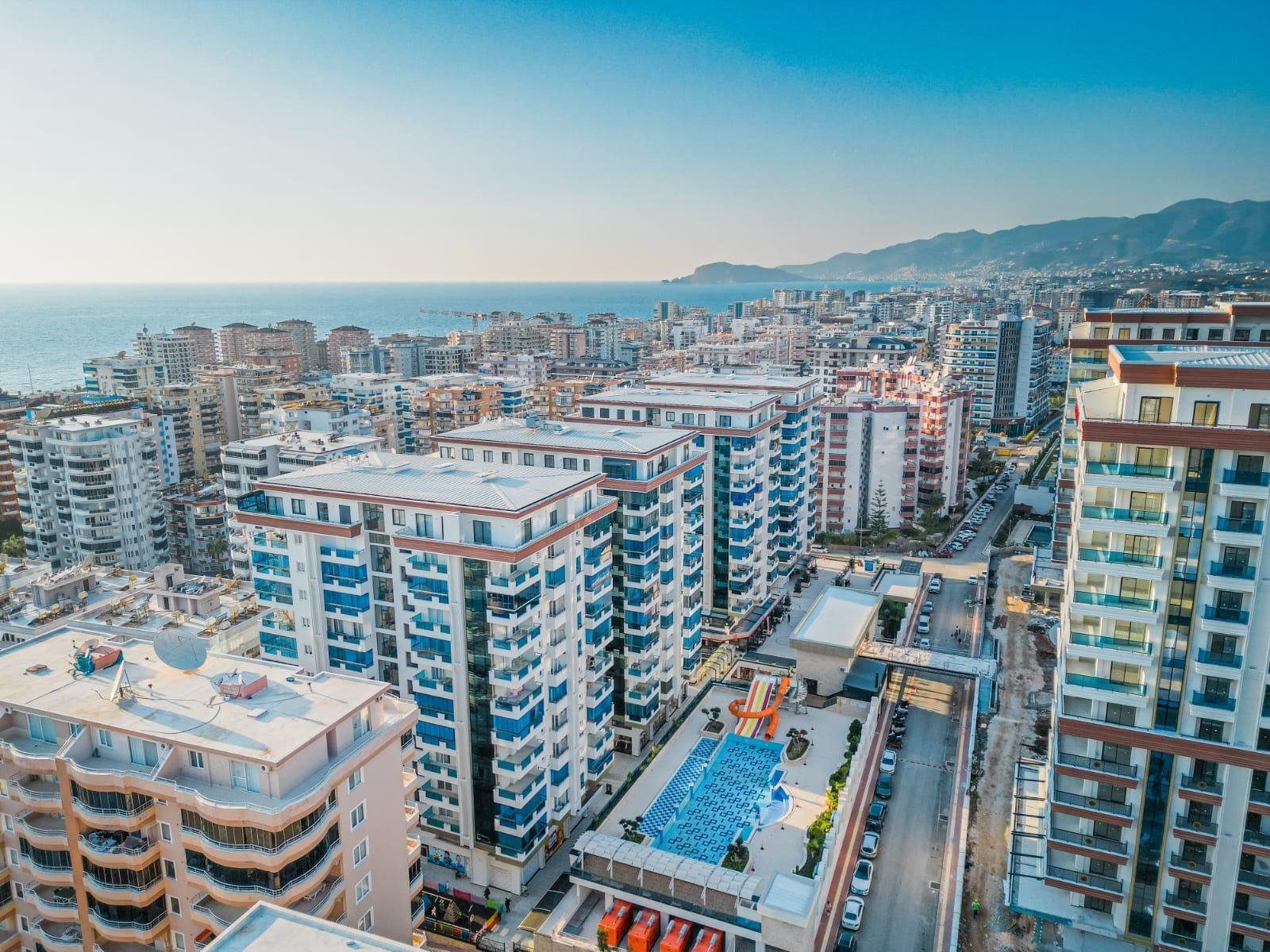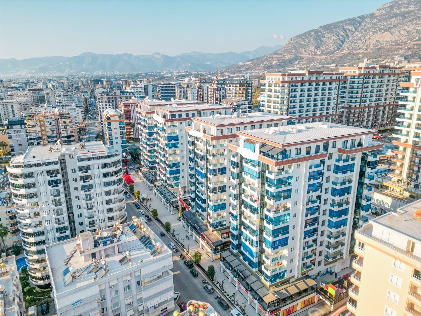 Комплекс расположен в районе Махмутлар — самом динамично развивающемся районе Аланьи. Это оживлённая часть города с полноценной городской жизнью: рестораны, кафе, супермаркеты, банки, школы и всё необходимое находится рядом. Важно отметить, что в районе всего два крупных торговых центра, и один из них находится прямо в этом комплексе, что делает его по-настоящему уникальным. Удобная транспортная доступность позволяет быстро добраться в любую точку города, а дорога до аэропорта занимает около 20 минут. До моря — комфортная прогулка 10 минут.