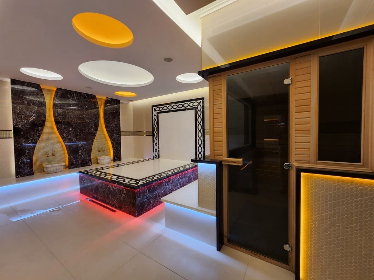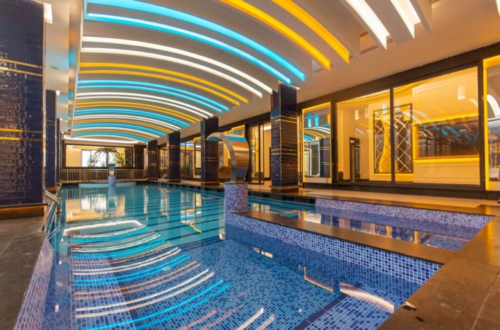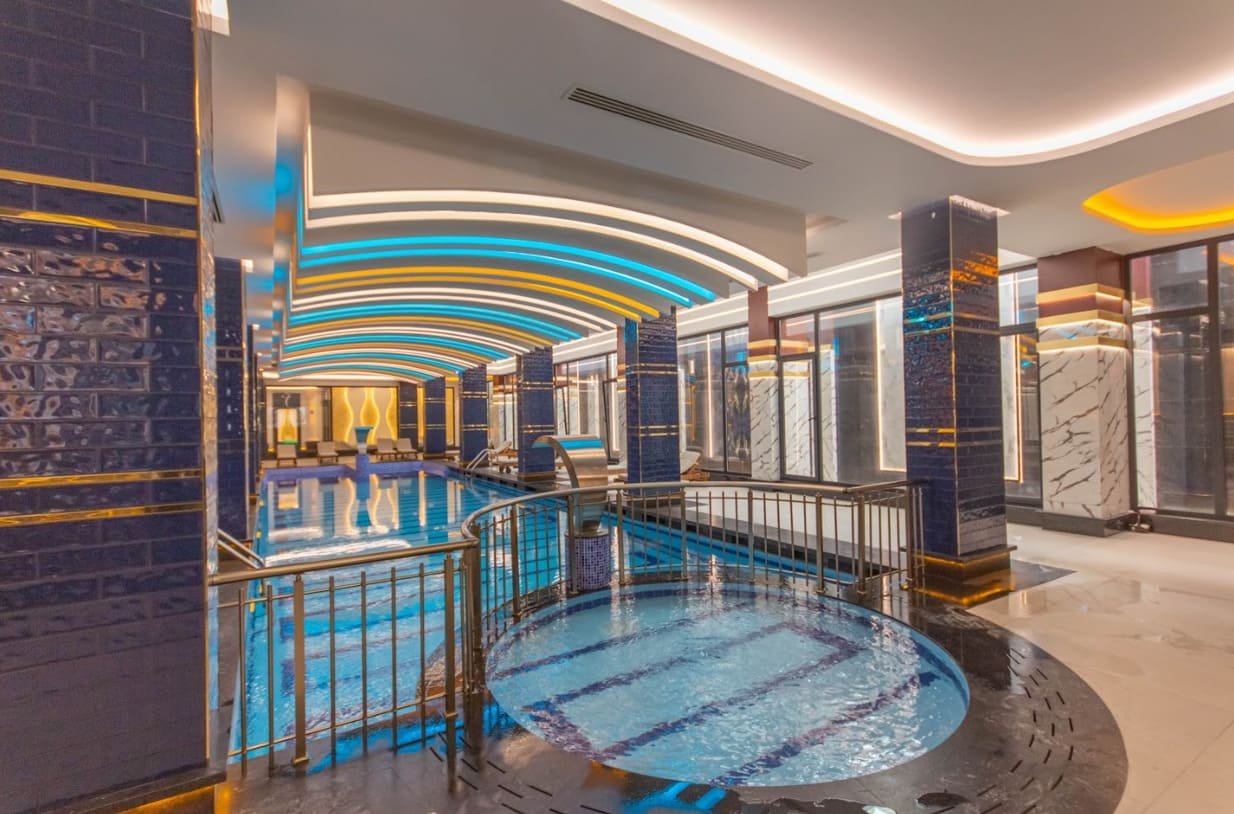 Инфраструктура комплекса впечатляет своим разнообразием: открытые бассейны с аквапарком, крытый подогреваемый бассейн, большая SPA-зона с хамамом, сауной, паровой и соляной комнатами, массажными кабинетами и зоной отдыха. Для активного образа жизни предусмотрены спортивные площадки, теннисный корт и фитнес-зоны. Для семей — детские площадки и игровые зоны. Территория благоустроена, с ландшафтным дизайном, зонами для отдыха, барбекю и прогулок. Также есть подземный паркинг и круглосуточное обслуживание комплекса.