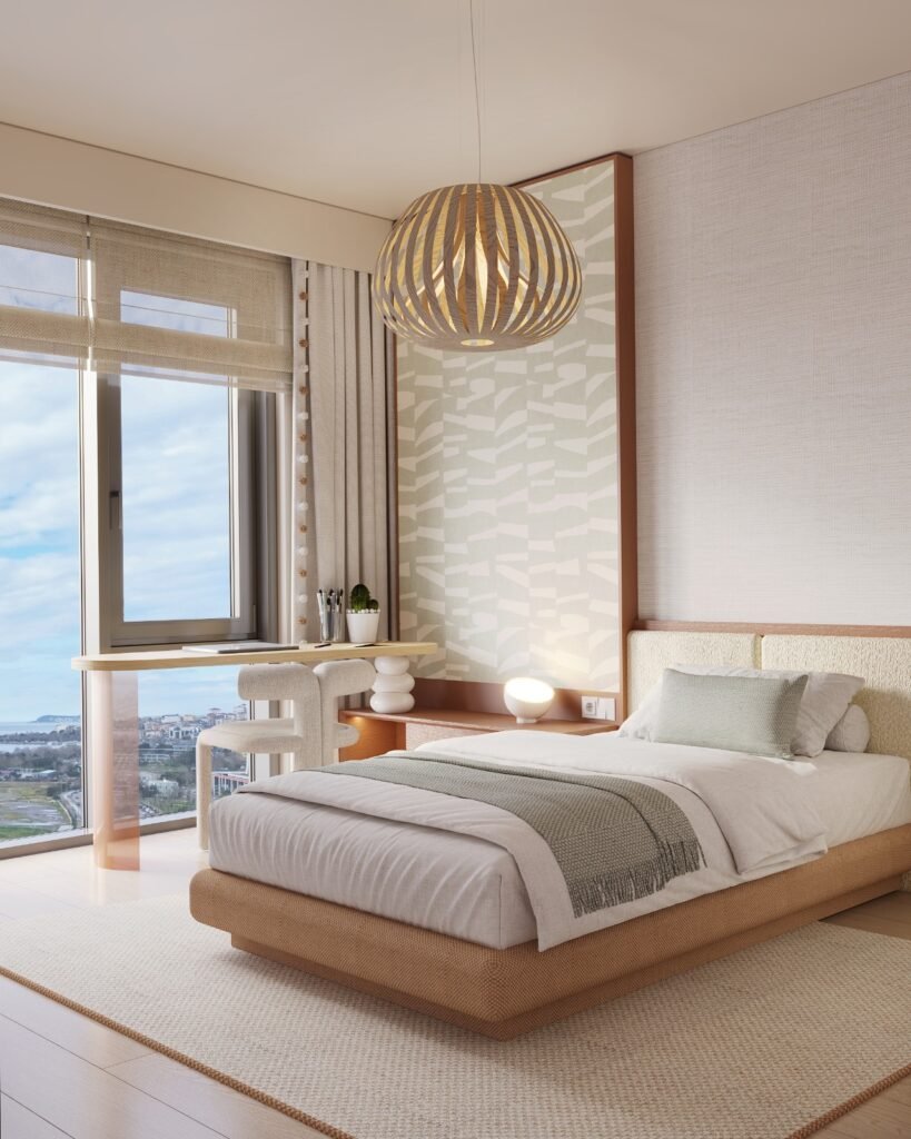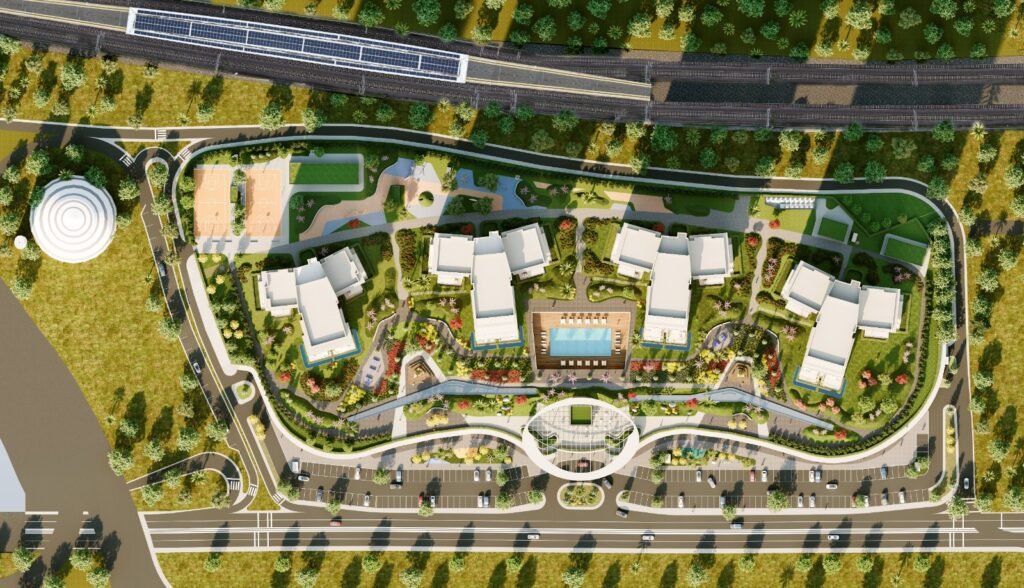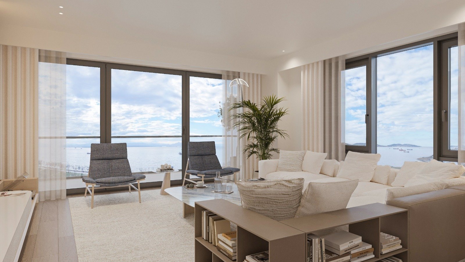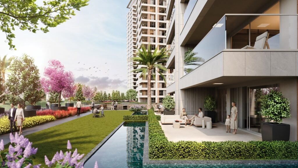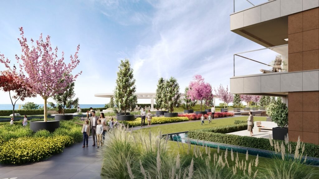 Архитектура комплекса продумана до мелочей: здания гармонично вписаны в пространство с большими зелёными зонами, прогулочными аллеями и открытыми видами. Панорамные окна и грамотное расположение блоков позволяют наслаждаться видами на Мраморное море и Принцевы острова. Это сочетание городской динамики и уюта природы.