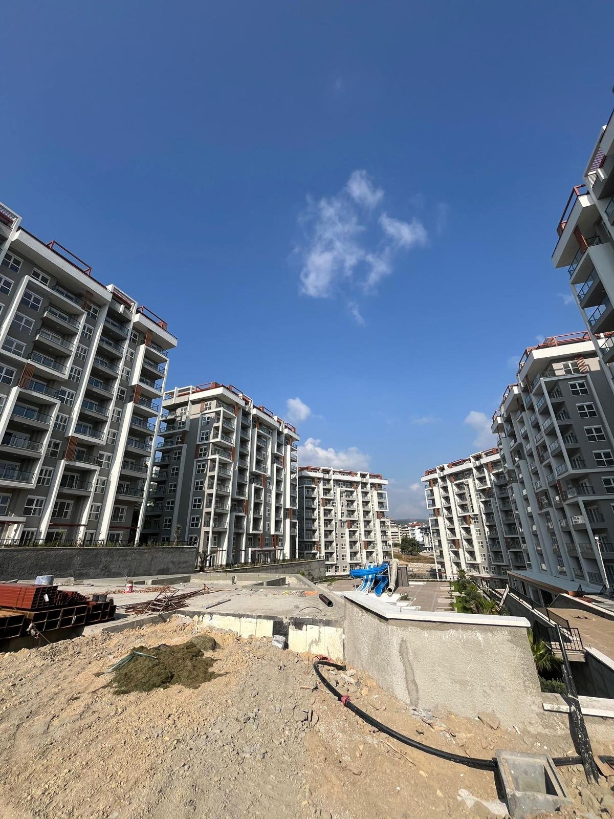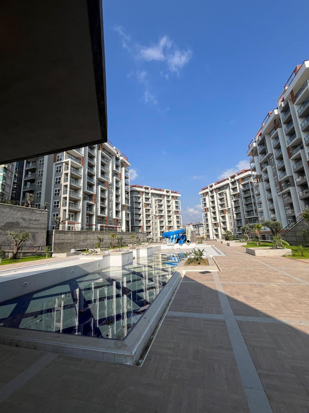 Продаётся квартира 1+1 площадью 55 м², расположенная на 2 этаже с юго-западной ориентацией. Из окон и с балкона открывается приятный вид на внутреннюю территорию комплекса — зелёную зону с бассейном и ландшафтным дизайном. Квартира готова к финишной отделке, установлены кондиционеры и бойлер. Это срочная перепродажа от инвестора, цена ниже, чем у застройщика — предложение на старте сезона с высокой инвестиционной привлекательностью.