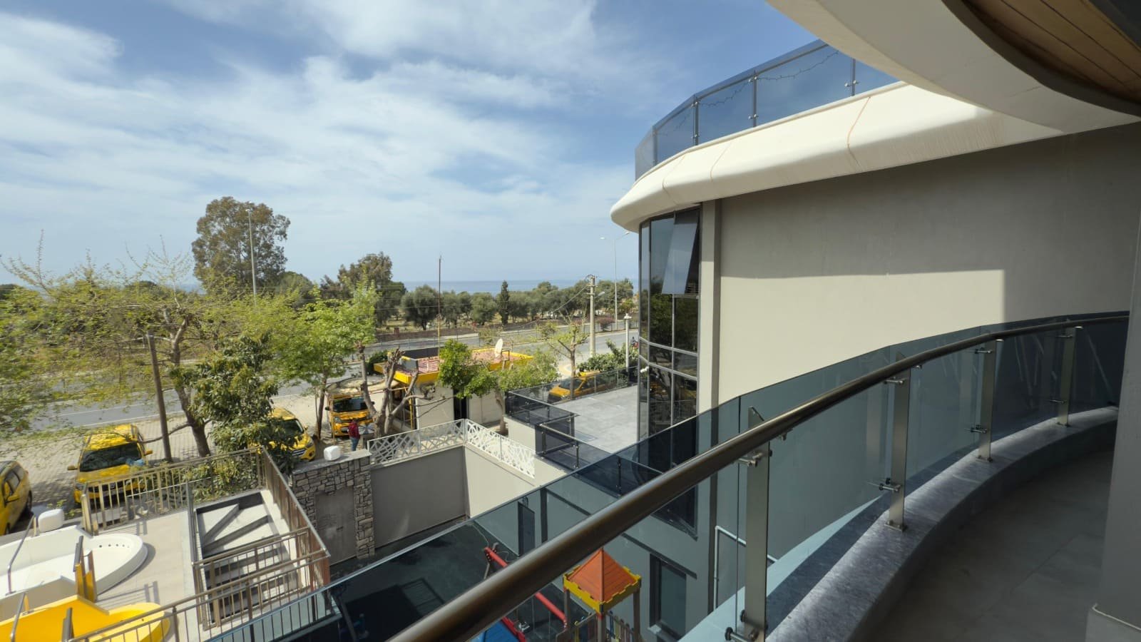 Поблизости находятся супермаркеты, небольшие кафе, набережная для прогулок, остановки транспорта, аптеки. До центра Махмутлара — 5 минут на машине, до Алании — около 15 минут. Район активно развивается, формируя ценную курортную среду с растущим спросом на качественное жильё у моря.