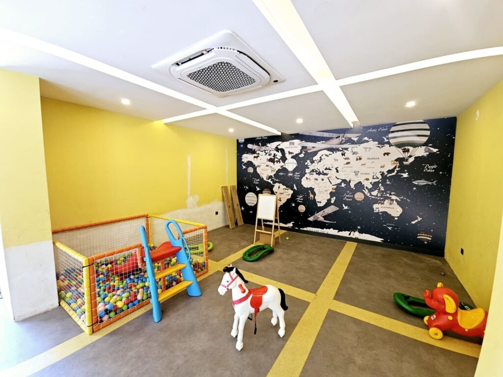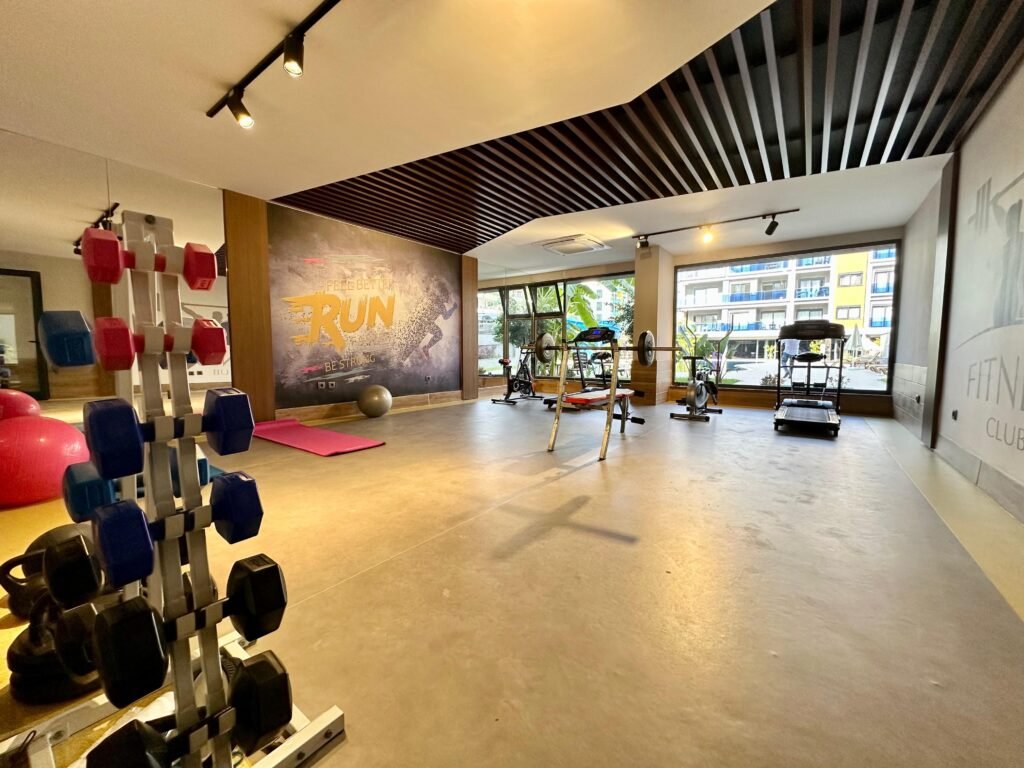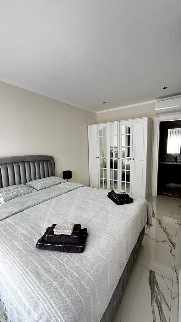 Апартаменты находятся на 3 этаже. Планировка 2+1 имеет площадь 90 м2 и включает в себя совмещённую с кухней гостиную комнату, две спальни, две ванные комнаты и балкон с видом на территорию и бассейн комплекса. Квартира меблирована и укомплектована всем необходимым для комфортного проживания и отдыха.