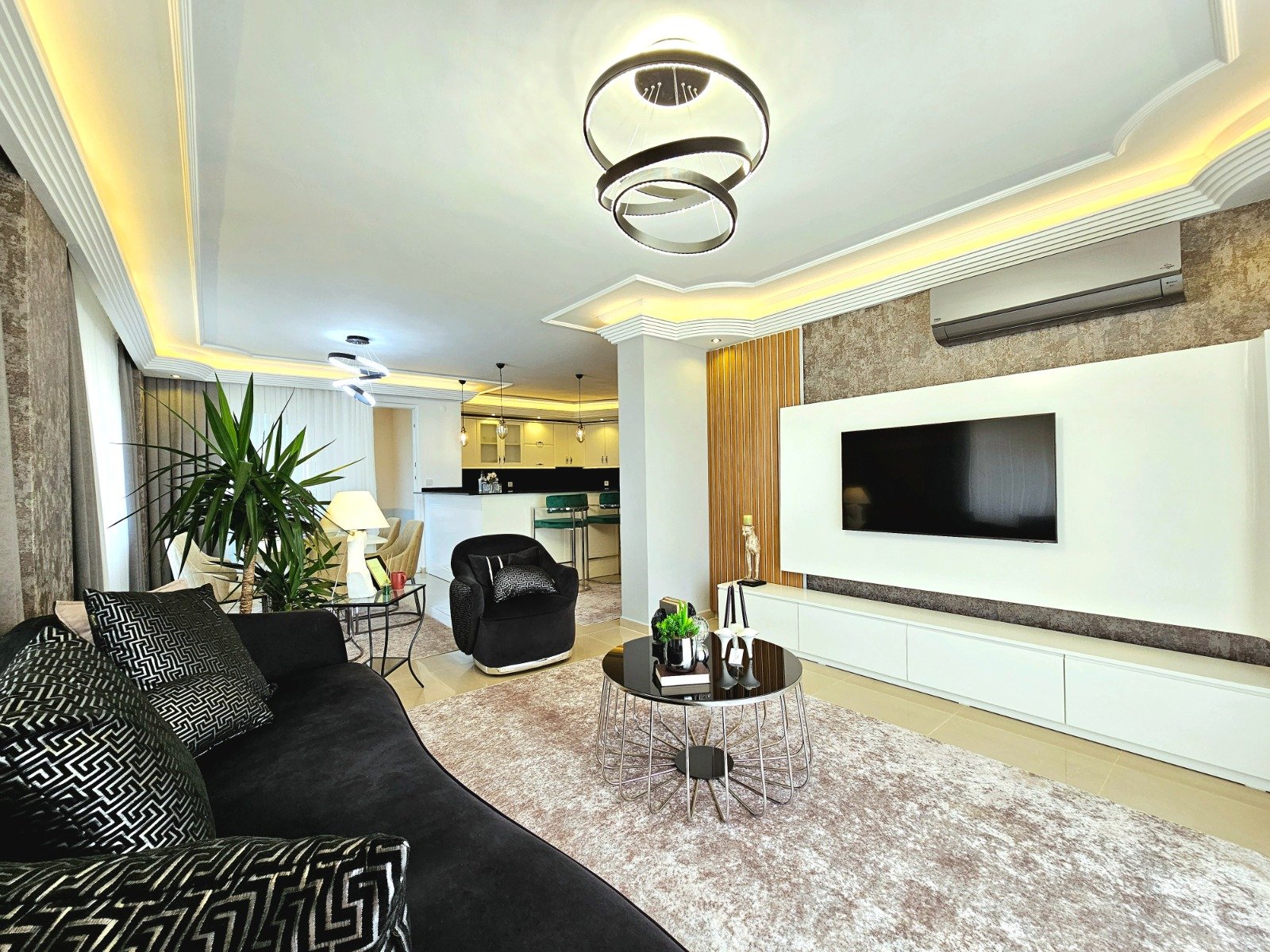 Роскошный пентхаус планировки 3+1 с просторной площадью 200 м², находящийся в популярном и развитом районе Оба. Это идеальное жилье для тех, кто ценит комфорт и простор, с дизайнерским ремонтом и полностью меблированным интерьером.