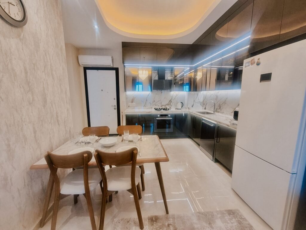 Современные новые апартаменты 1+1 в самом масштабном и долгожданном комплексе Махмутлара — отличный выбор для комфортного и спокойного отдыха у моря. Квартира расположена на 2 этаже, с видом на территорию комплекса и бассейн. Общая площадь — 68 м².