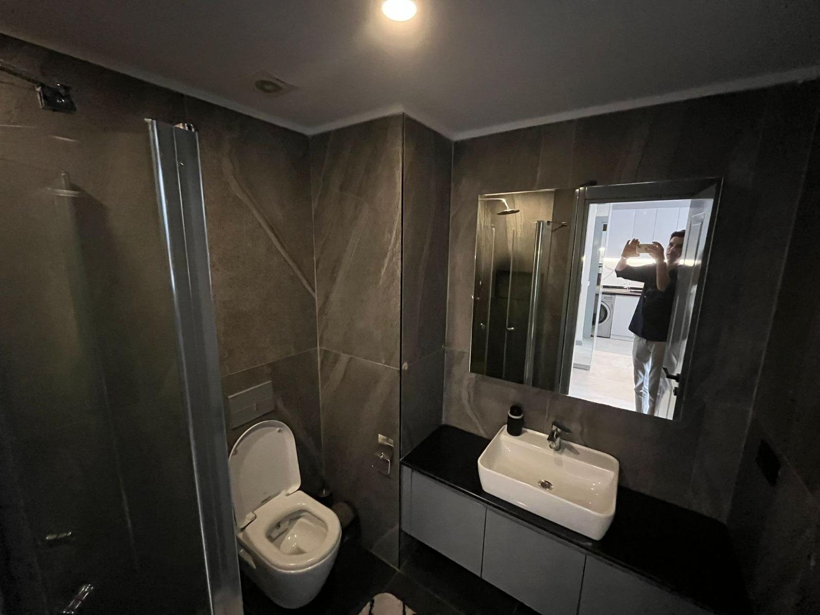 Квартира светлая и современная, с качественной отделкой и продуманными техническими решениями. Установлены алюминиевые окна и раздвижные двери с теплоизолирующими стеклопакетами, керамическая плитка и ламинат на полу, декоративное светодиодное освещение на потолках, стальная входная дверь и хорошая звукоизоляция между квартирами. Кухня выполнена в современном стиле с лакированными фасадами, гранитной столешницей, каменной раковиной и подсветкой. Ванная комната оснащена тёплым полом, душевой кабиной из закалённого стекла, встроенной мебелью с зеркалом и подсветкой, системой вентиляции и качественной гидроизоляцией.