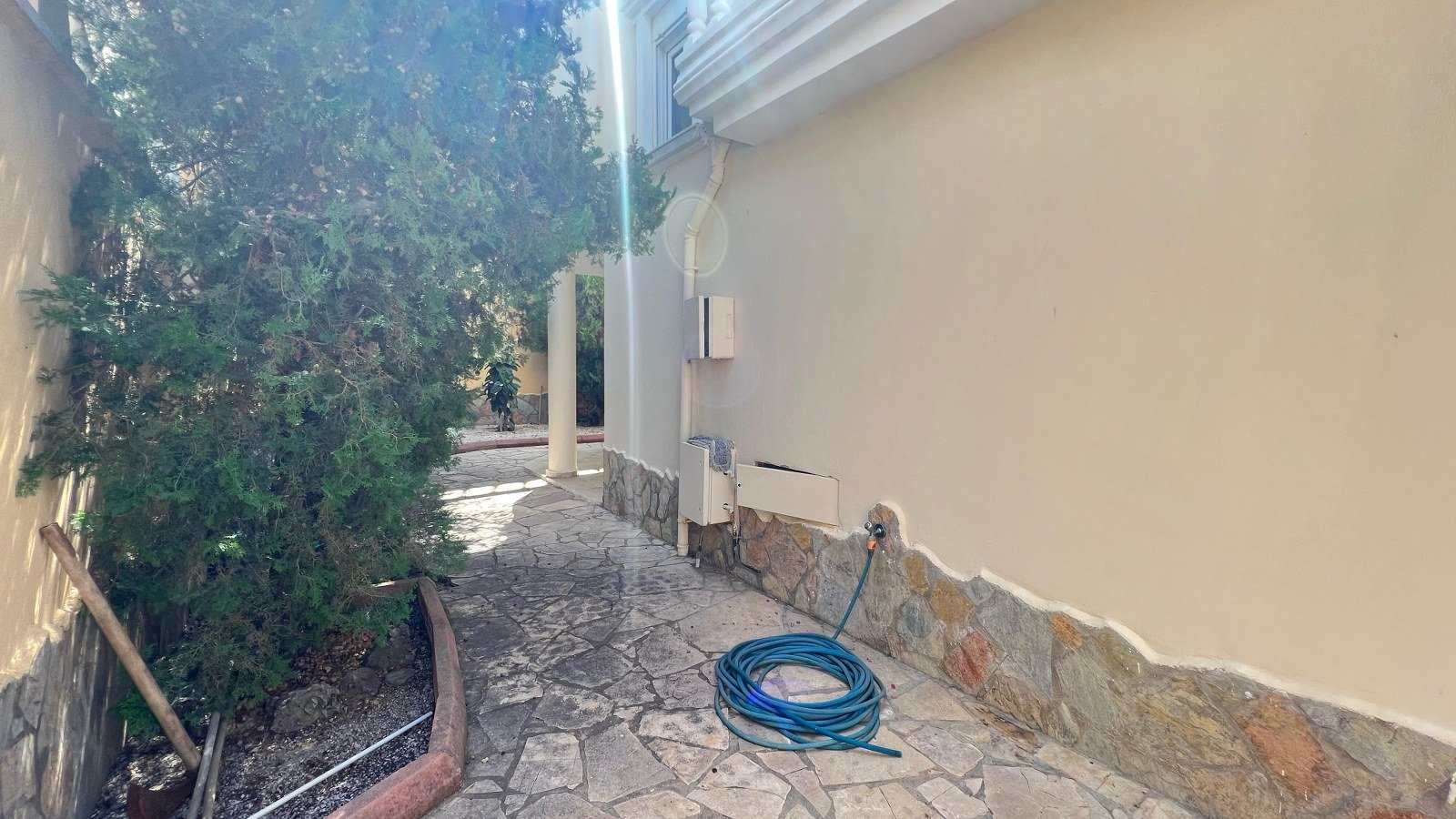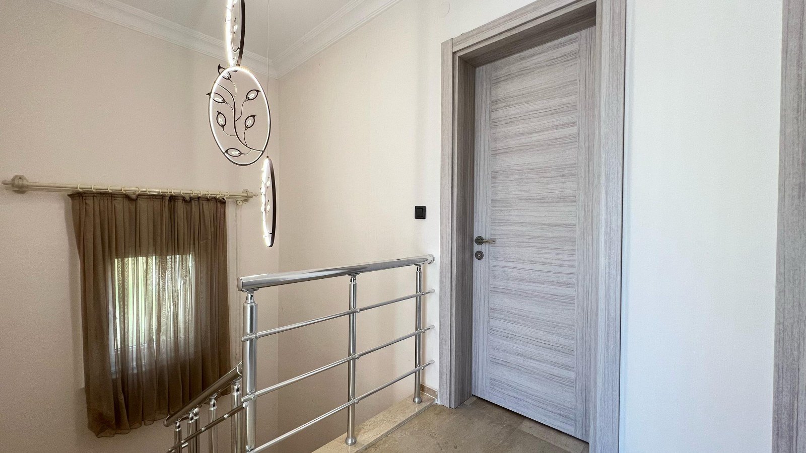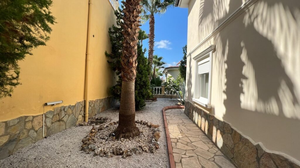 Планировка 3+1 включает просторные жилые зоны, три ванные комнаты и функциональную кухню, которая была обновлена. В доме выполнены работы по обновлению ванных комнат, благоустройству сада и обслуживанию бассейна. Вилла продаётся с мебелью, имеет две большие террасы и собственный закрытый гараж.