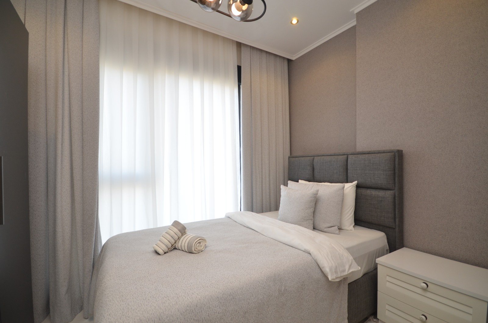 Вы приобретаете меблированную квартиру 2+1 площадью 90 м² в современном жилом комплексе. Апартаменты расположены на третьем этаже и обладают сразу двумя приятными преимуществами — видом на море и видом на бассейн. Это готовое решение для жизни у побережья: удобная планировка, мебель, развитая инфраструктура и привлекательная стоимость делают предложение особенно выгодным.