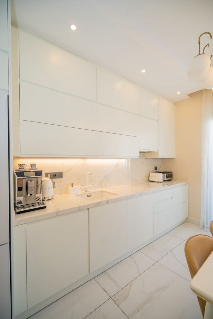 Этот вариант идеально подойдёт семьям, которым важно наличие нескольких спален и отдельной кухни, а также покупателям, ценящим индивидуальный дизайн и качественную технику. Квартира будет интересна тем, кто ищет просторное жильё у моря для постоянного проживания, а также инвесторам, ориентированным на ликвидный объект в развитом районе Аланьи.