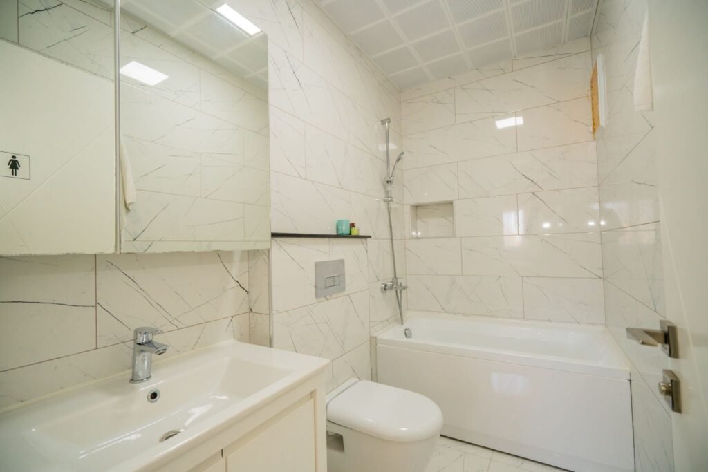 Жилой комплекс предлагает комфортную инфраструктуру: открытый и детский бассейны, финскую сауну, турецкий хамам, фитнес-зал и массажную комнату. На территории предусмотрены зелёный сад, прогулочные дорожки, беседки и зоны барбекю, детская площадка, открытая парковка. Безопасность обеспечивается системой видеонаблюдения 24/7, а генератор гарантирует бесперебойную работу здания. Доступны спутниковое телевидение и беспроводной интернет.