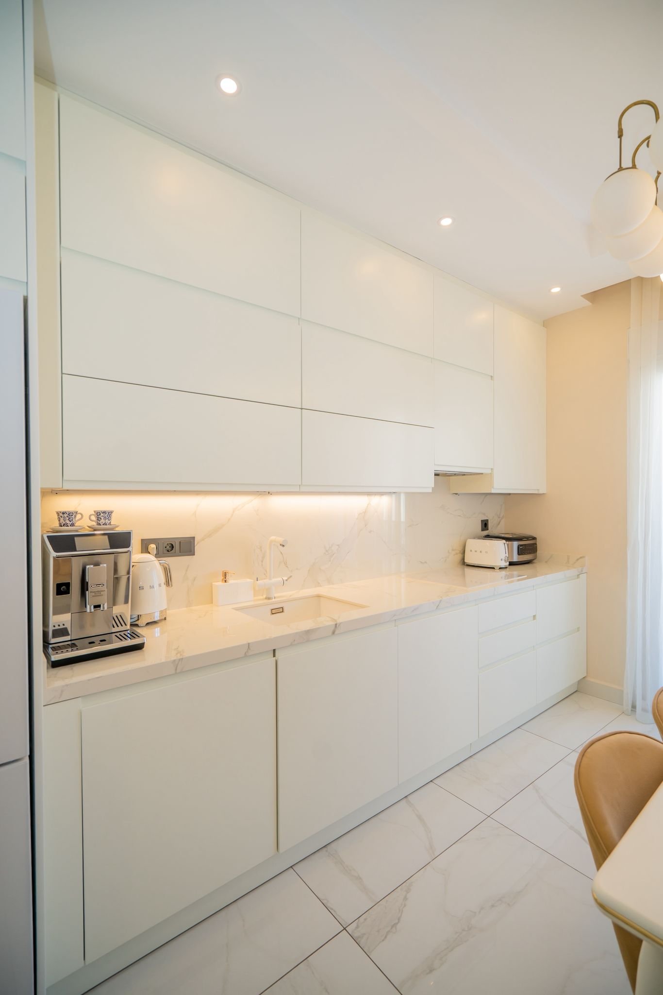 Вы приобретаете просторную квартиру площадью 125 м² в современном доме 2022 года постройки, расположенную на 5 этаже. Формально планировка 2+1 с отдельной кухней, однако по факту гостиная грамотно переоборудована в дополнительную спальню, благодаря чему квартира используется как полноценная трёхспальная. Это редкое предложение для тех, кто ищет максимум пространства, света и функциональности в сочетании с качественным ремонтом и дорогой техникой ведущих брендов.