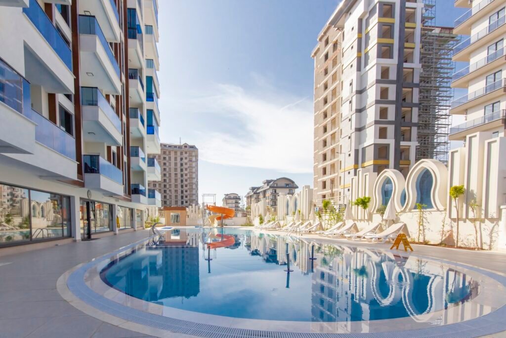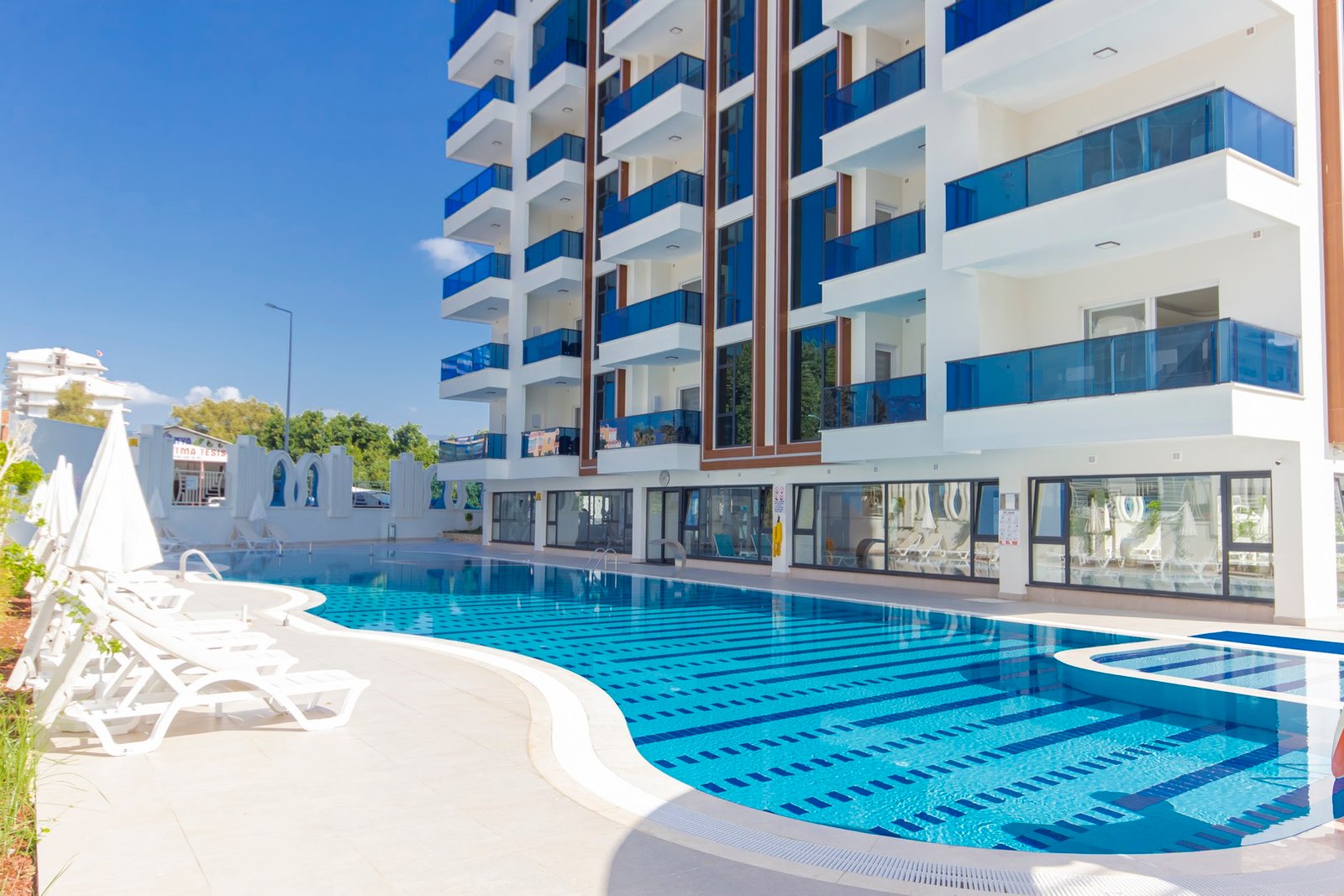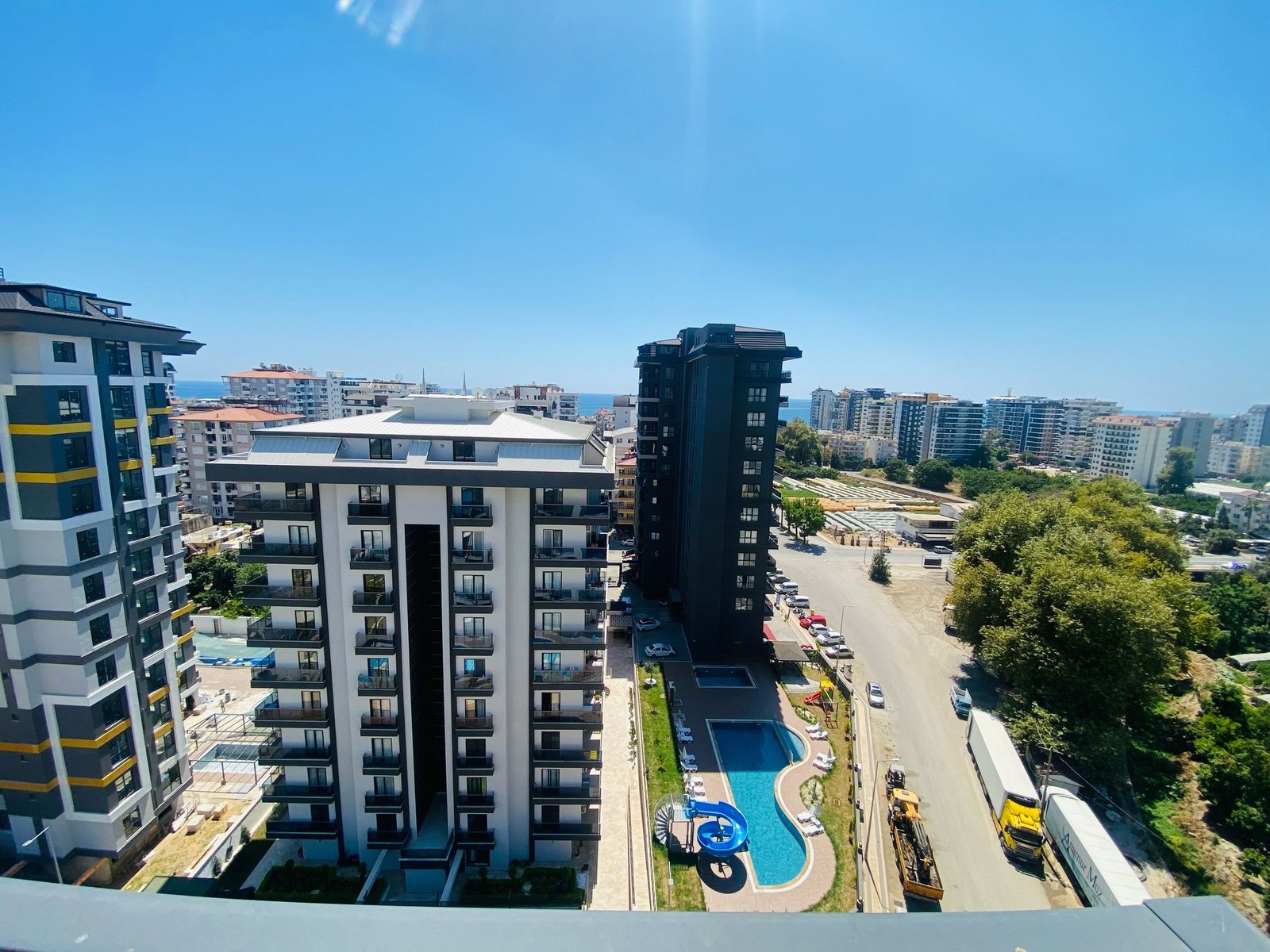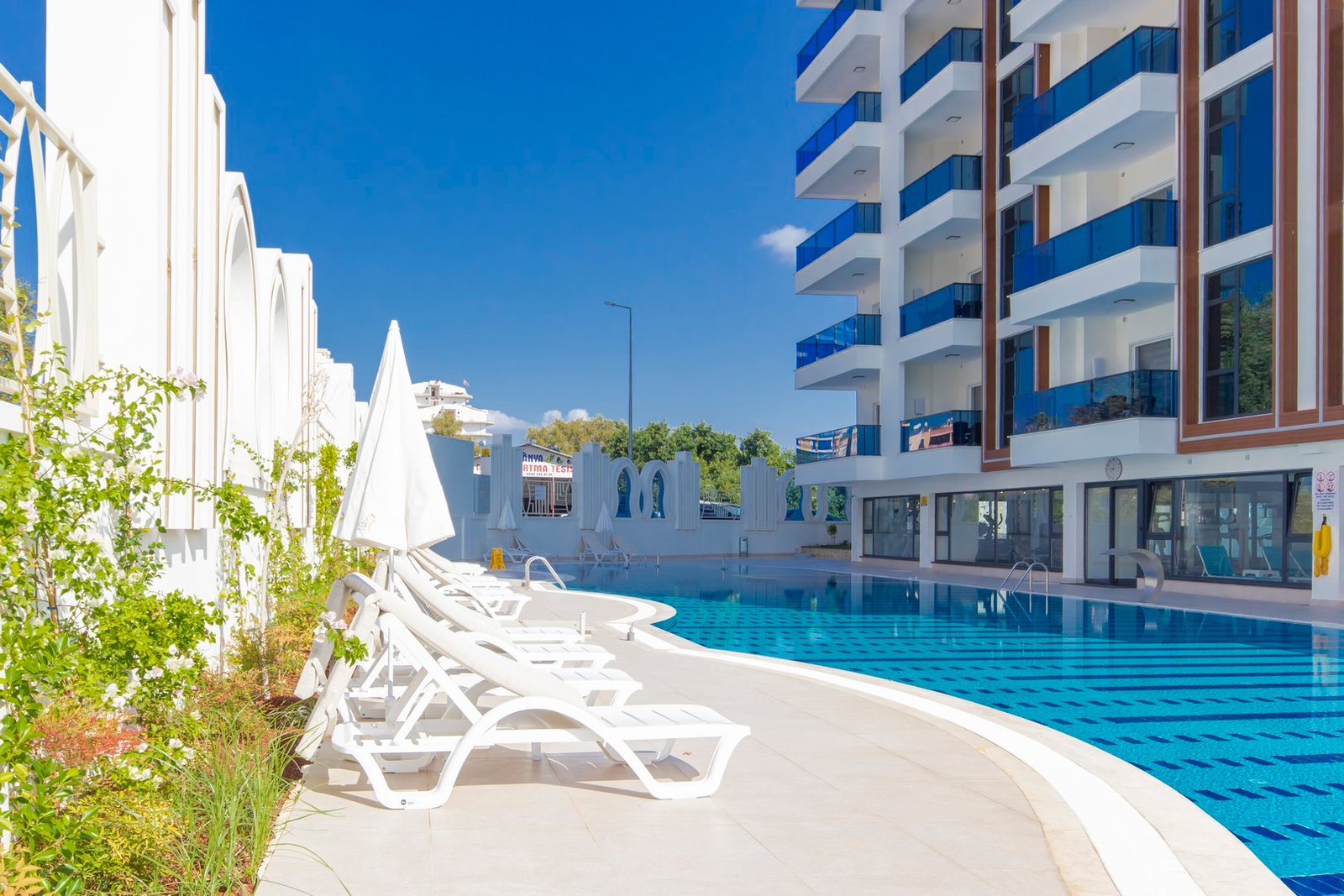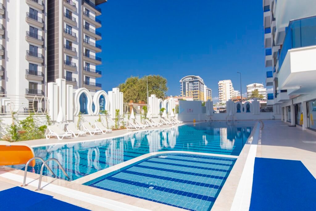 Объект расположен в районе Махмутлар — одном из самых популярных районов Аланьи среди иностранных покупателей. До моря около 600 метров, дорога занимает несколько минут пешком. Район активно развивается, при этом здесь уже сформирована полноценная инфраструктура: супермаркеты, кафе, банки, аптеки, остановки транспорта и прогулочные зоны.