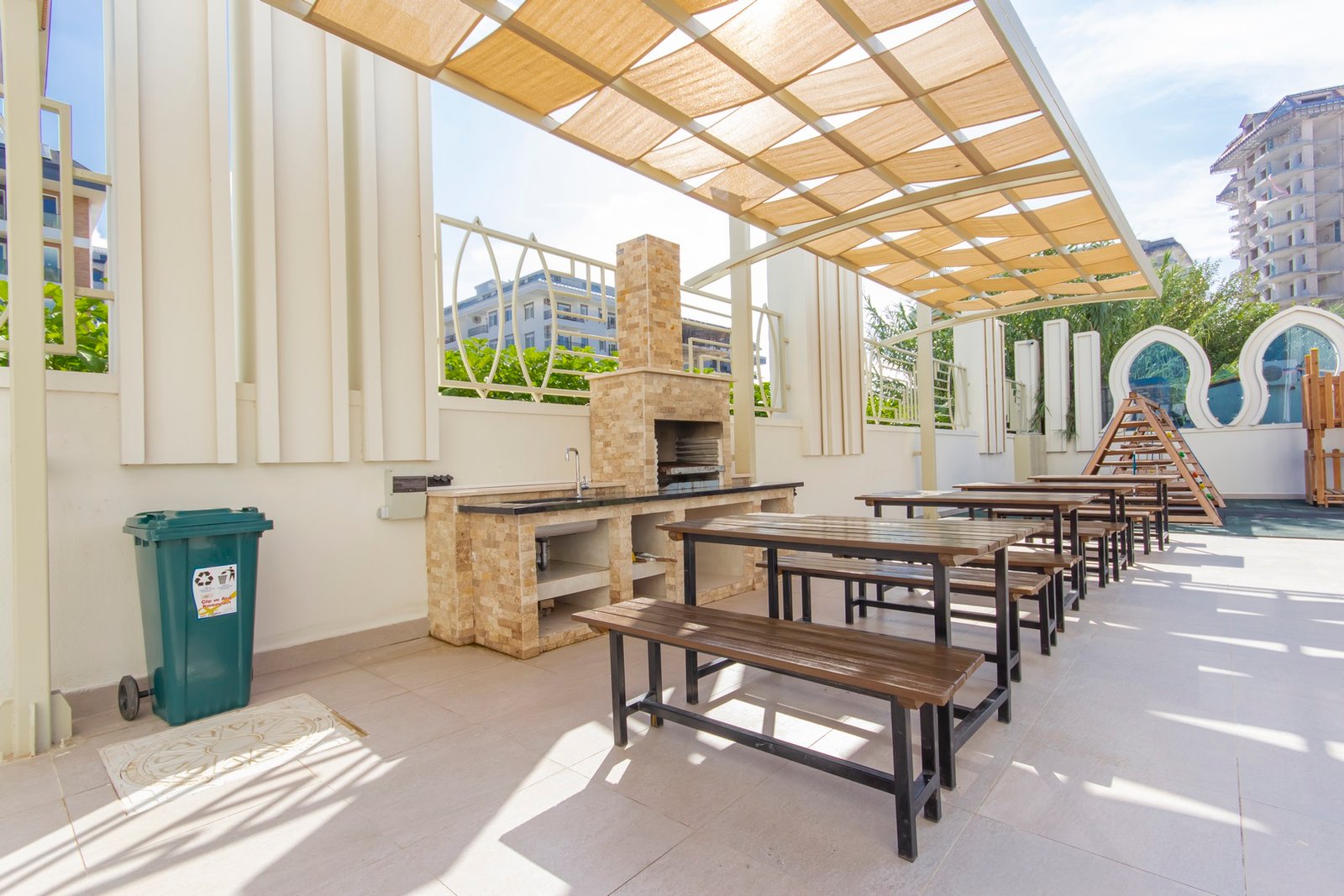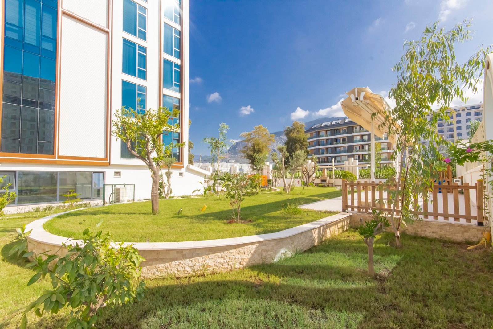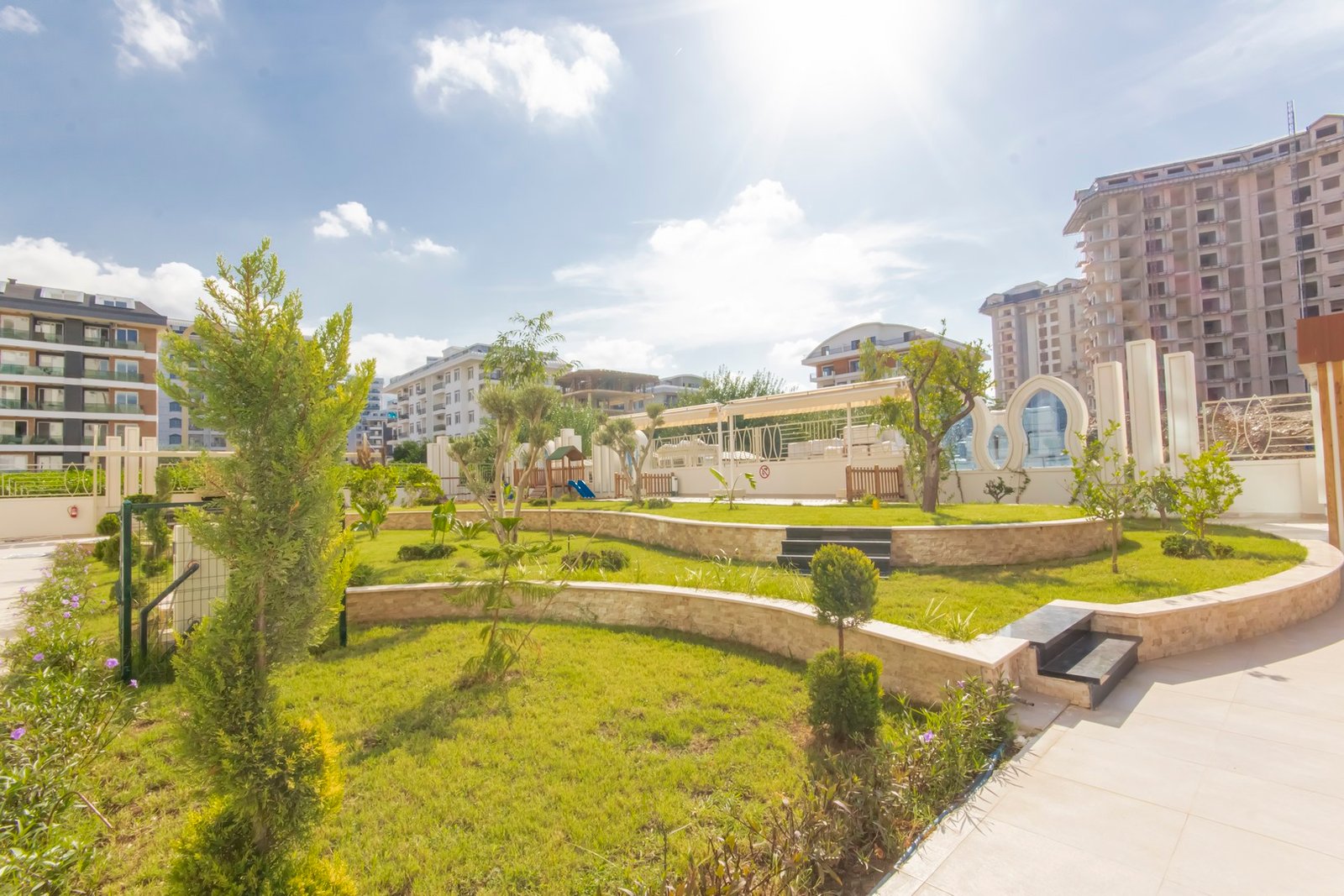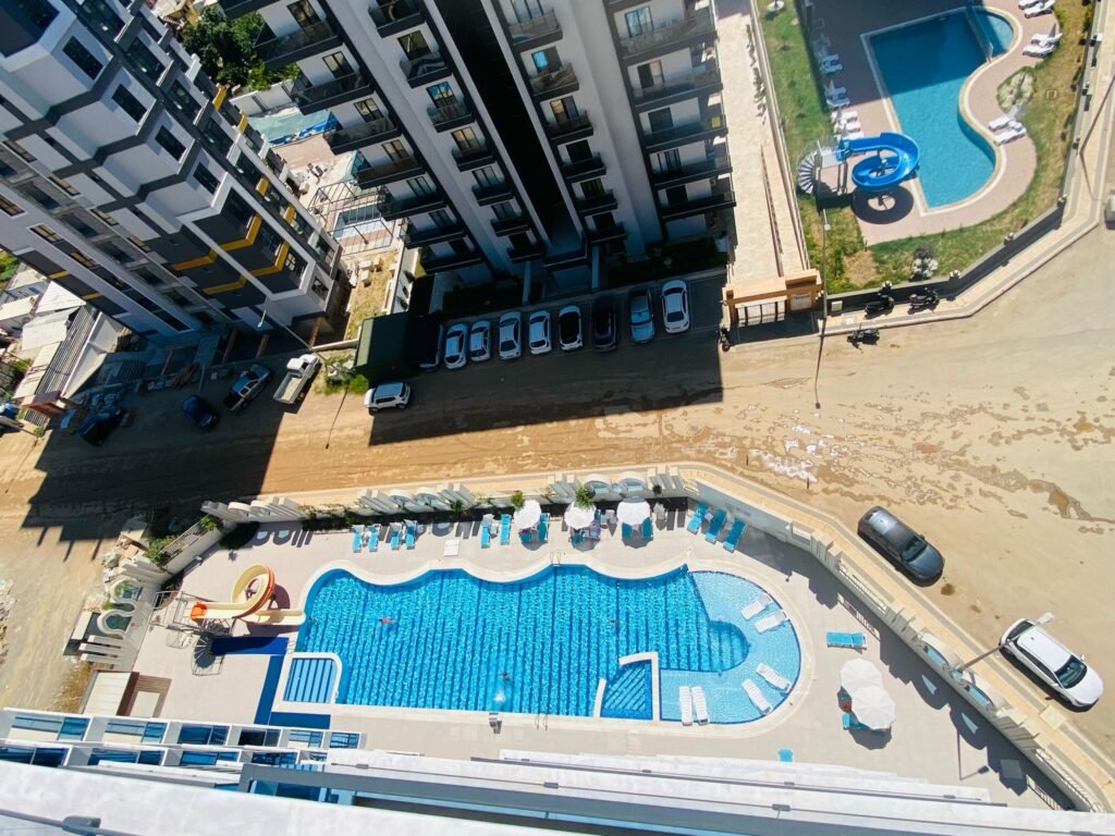 Объект расположен в районе Махмутлар — одном из самых популярных районов Аланьи среди иностранных покупателей. До моря около 600 метров, дорога занимает несколько минут пешком. Район активно развивается, при этом здесь уже сформирована полноценная инфраструктура: супермаркеты, кафе, банки, аптеки, остановки транспорта и прогулочные зоны.