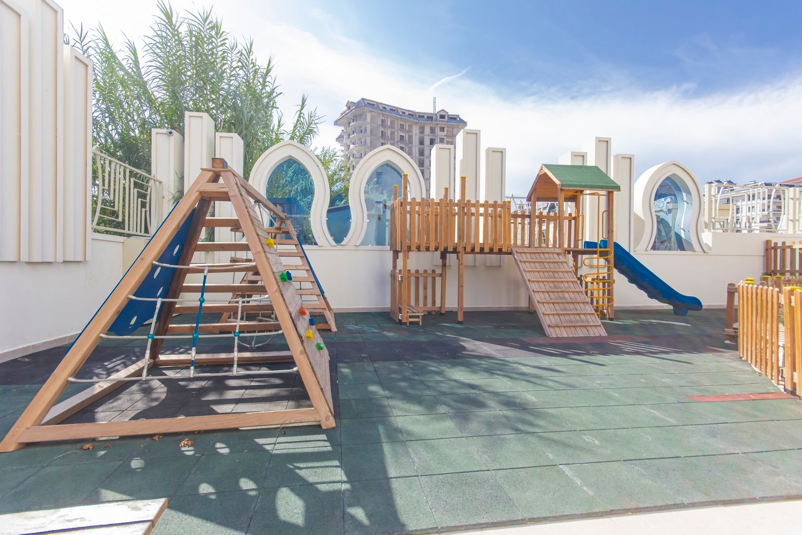 Современный жилой комплекс состоит из одного блока, но располагает полноценной территорией и инфраструктурой уровня курортного отеля. На первом уровне комплекса размещены зоны отдыха и активности: бассейн, фитнес-зал, СПА-зона, хамам, сауна, зоны для отдыха и общения жильцов. Территория благоустроена и ухожена, предусмотрены системы безопасности и комфортные общественные пространства.