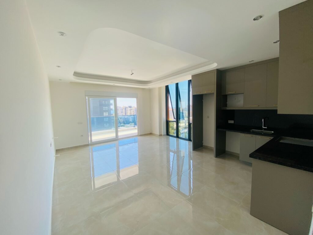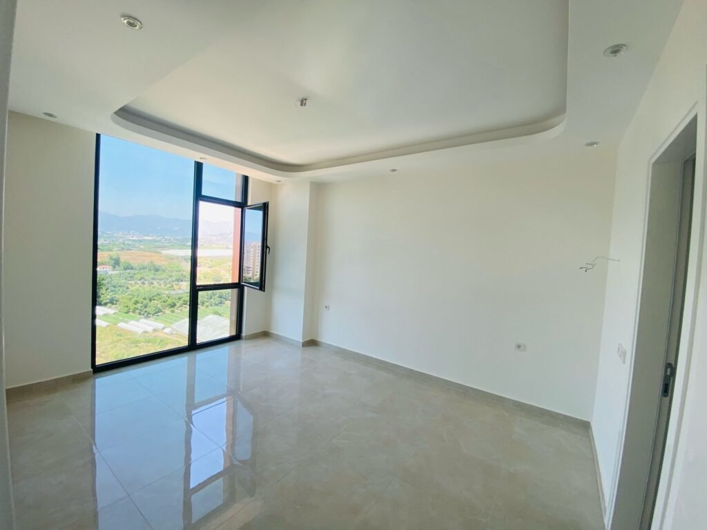 Просторная квартира планировки 2+1 площадью 103 м² расположена на высоком 11 этаже современного жилого дома. Квартира новая, с качественной премиальной отделкой и продуманной планировкой: две спальни, гостиная, два санузла и два балкона. Из окон открываются панорамные виды на горы, а с некоторых точек виден и морской горизонт. Квартира продаётся без мебели, что даёт возможность оформить интерьер полностью под себя. Предложение выставлено по цене ниже рыночной, что делает его особенно интересным для покупателей.