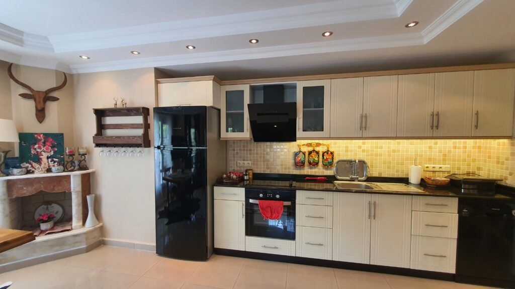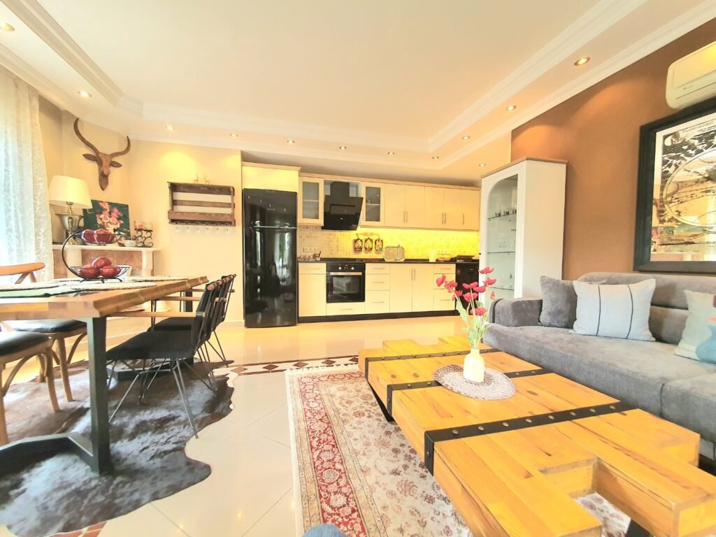 Уникальное предложение для тех, кто ищет атмосферу частного дома с комфортом жилого комплекса. Просторная квартира 2+1 в формате виллы с собственным садом и увеличенной площадью 110 м². Расположена на первом этаже двухэтажной виллы, имеет три балкона и продуманную планировку: гостиная с кухней открытого типа, две спальни, ванная комната и хозяйственное помещение. Квартира полностью меблирована и прошла полный ремонт — можно заехать и жить без дополнительных вложений. Приватный зелёный сад создаёт ощущение собственного дома и даёт дополнительное пространство для отдыха.