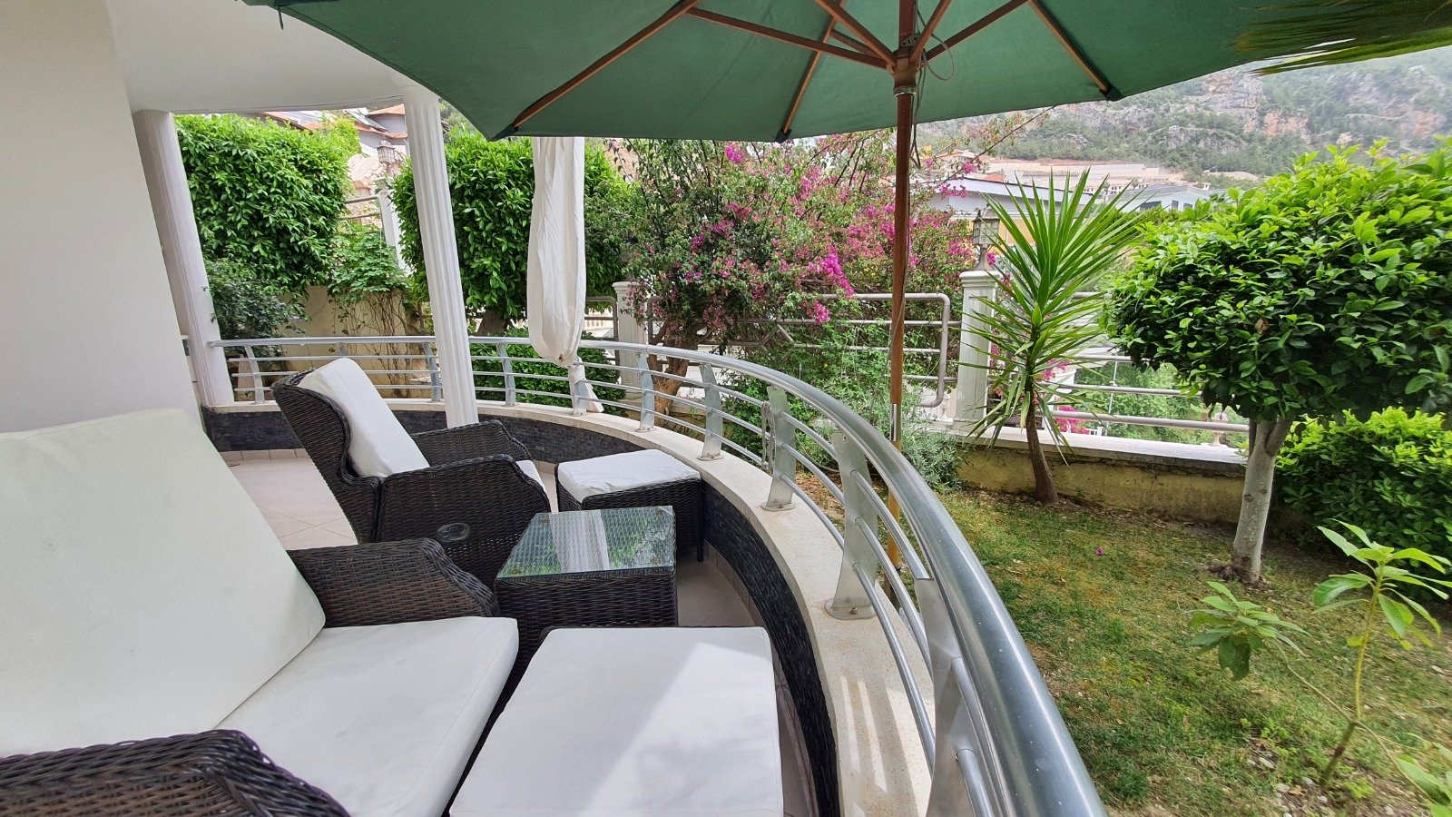Уникальное предложение для тех, кто ищет атмосферу частного дома с комфортом жилого комплекса. Просторная квартира 2+1 в формате виллы с собственным садом и увеличенной площадью 110 м². Расположена на первом этаже двухэтажной виллы, имеет три балкона и продуманную планировку: гостиная с кухней открытого типа, две спальни, ванная комната и хозяйственное помещение. Квартира полностью меблирована и прошла полный ремонт — можно заехать и жить без дополнительных вложений. Приватный зелёный сад создаёт ощущение собственного дома и даёт дополнительное пространство для отдыха.