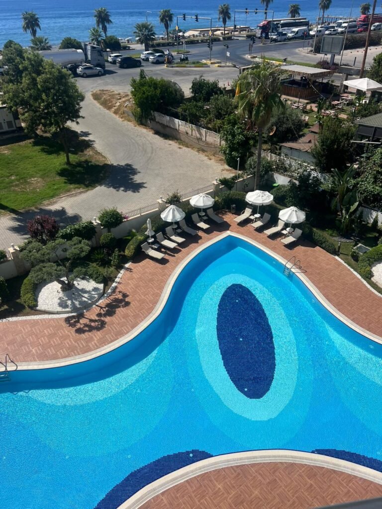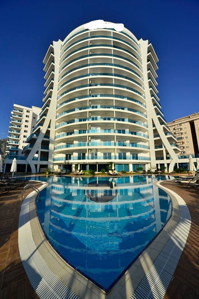 Квартира продаётся с полной мебелью и бытовой техникой, что позволяет сразу заехать и начать пользоваться недвижимостью без дополнительных вложений. Планировка включает просторную гостиную с кухней открытого типа, отдельную спальню, ванную комнату и большой панорамный балкон. Благодаря расположению квартиры с балкона открывается впечатляющий прямой вид на море, бассейн комплекса и историческую крепость Аланьи, что создаёт уникальную атмосферу и делает объект особенно привлекательным среди аналогичных предложений на рынке.