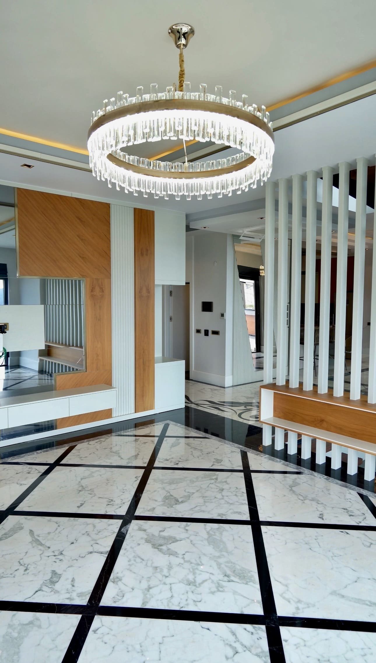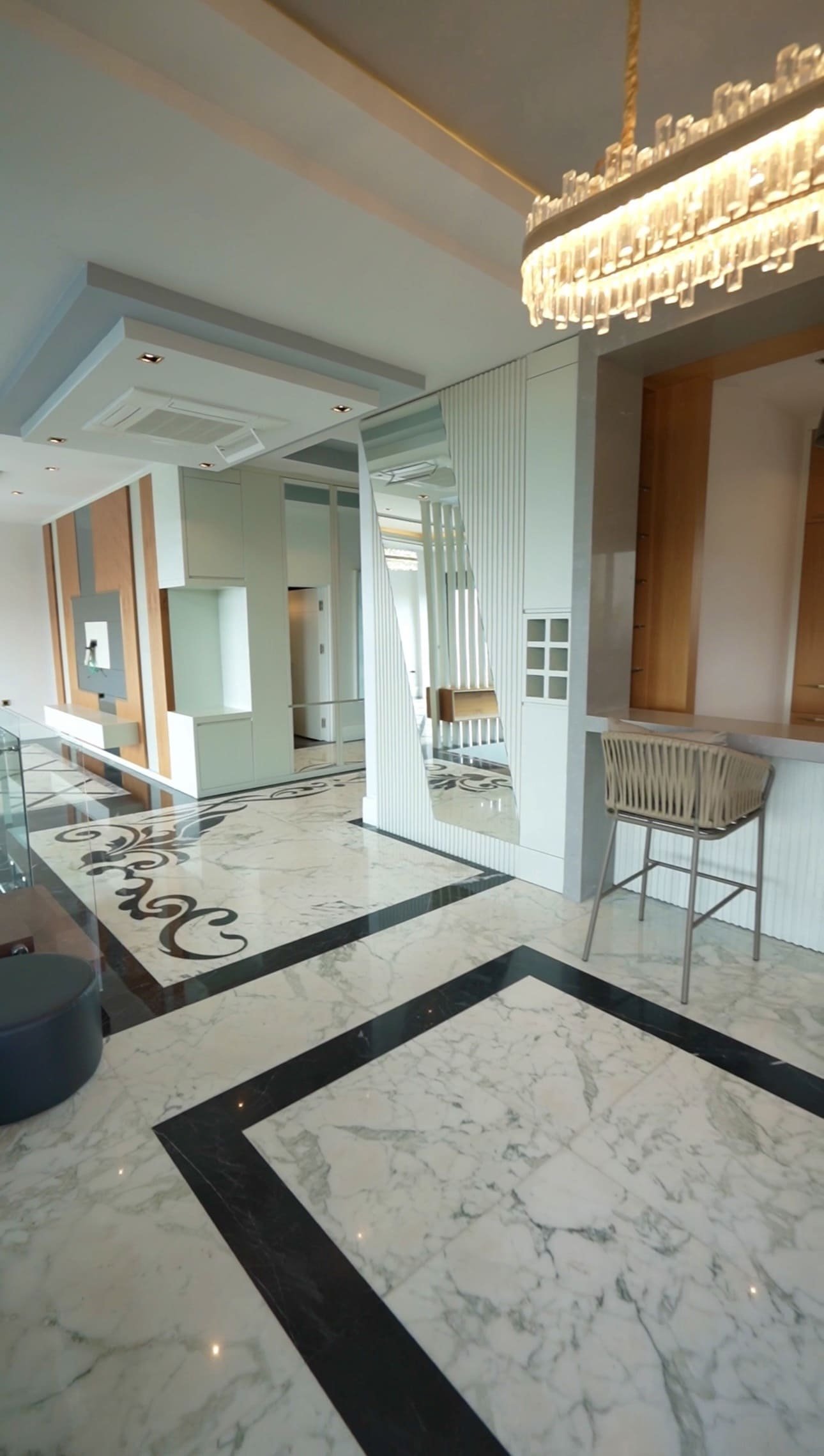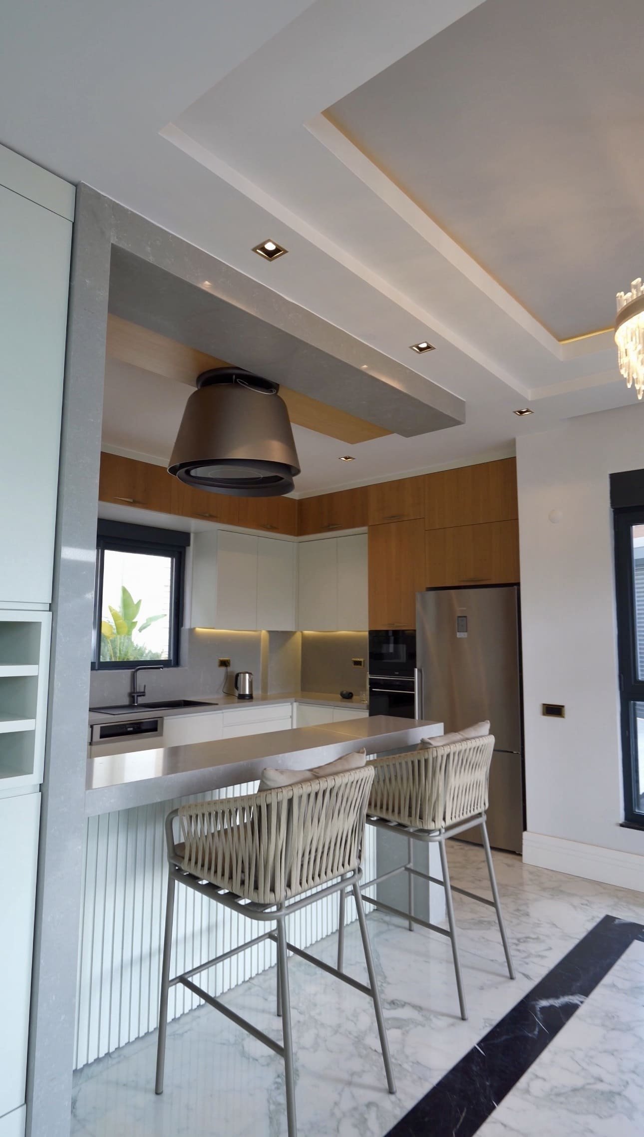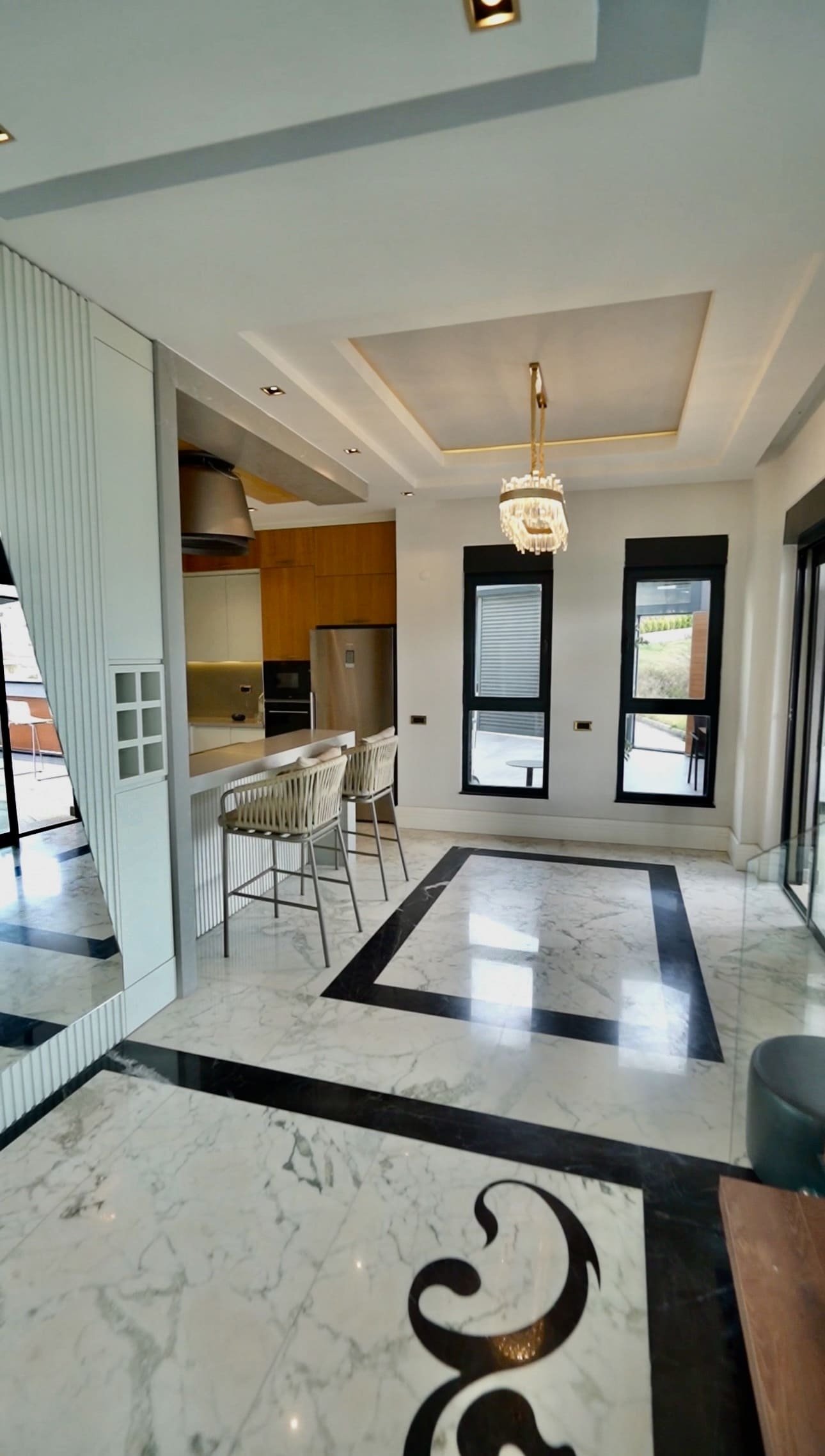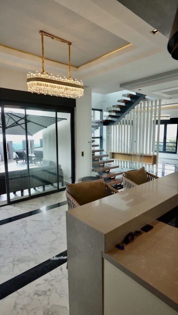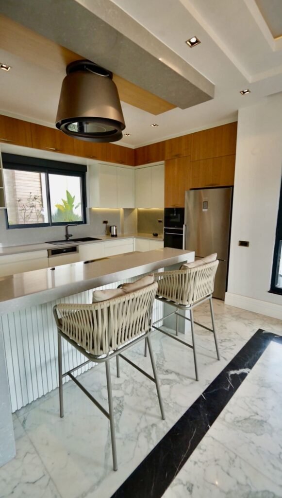 Высота потолков 3 метра усиливает ощущение простора и света. Кухонная зона оборудована техникой премиального бренда Franke. По всей вилле установлены система кондиционирования и тёплые полы, обеспечивающие комфорт в любое время года.