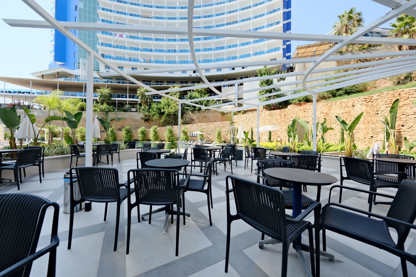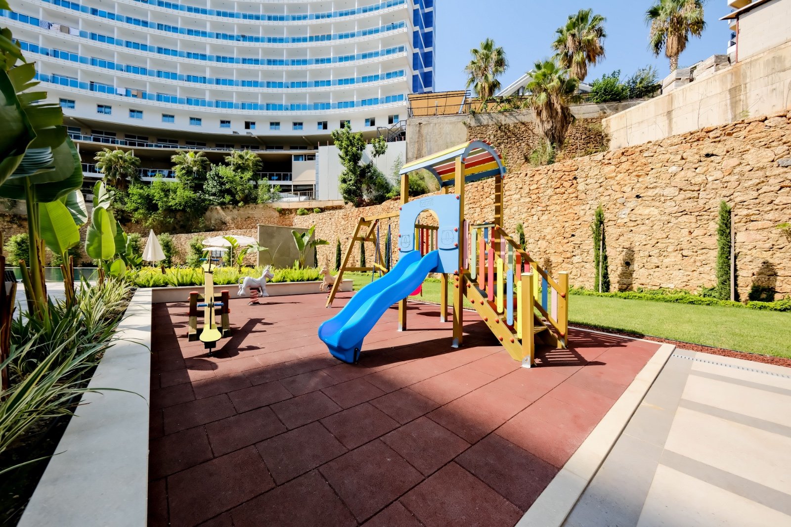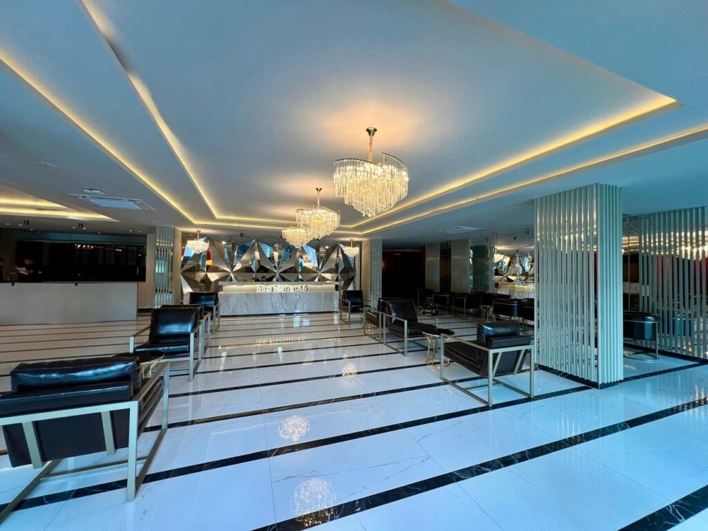Комплекс занимает территорию 5.580 м² и предлагает инфраструктуру уровня премиум-класса. Жителям доступны большой открытый бассейн, детский бассейн, зоны джакузи, включая подогреваемые, а также полноценный SPA-центр с крытым бассейном, хамамом, сауной, паровой и массажными кабинетами. На территории есть фитнес-зал, кинотеатр, бильярд, детская игровая комната и площадка, кафе и уютное лобби. Безопасность обеспечивается круглосуточной охраной и видеонаблюдением, предусмотрены генератор, управляющий, Wi-Fi и спутниковое телевидение. Территория благоустроена и закрыта от посторонних.