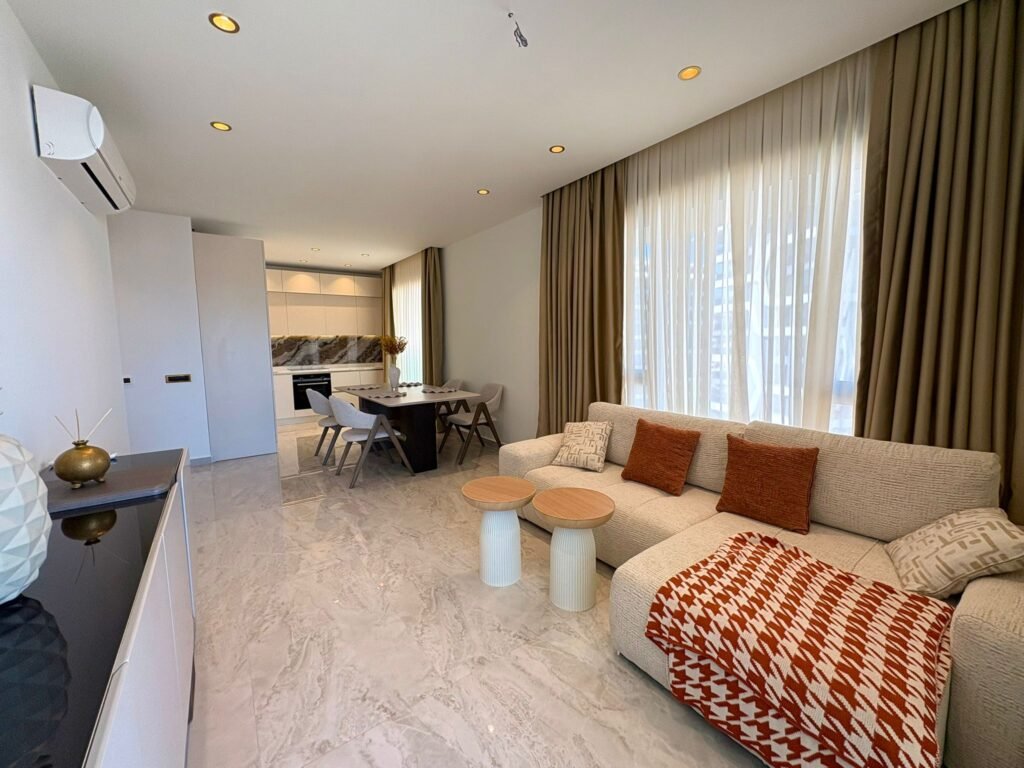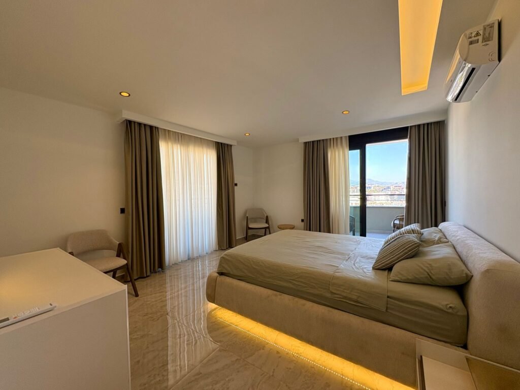 Вы становитесь владельцем просторного пентхауса 2+1 в одном из самых современных и востребованных комплексов Тосмура. Двухэтажная квартира площадью 123 м² расположена на верхнем уровне (8 этаж + мансарда), что обеспечивает максимум приватности, света и панорамных видов. Объект полностью меблирован и готов к проживанию, оснащён качественной техникой и отвечает самым высоким требованиям комфорта. Дом 2024 года постройки, что гарантирует современное качество строительства и инженерных решений.