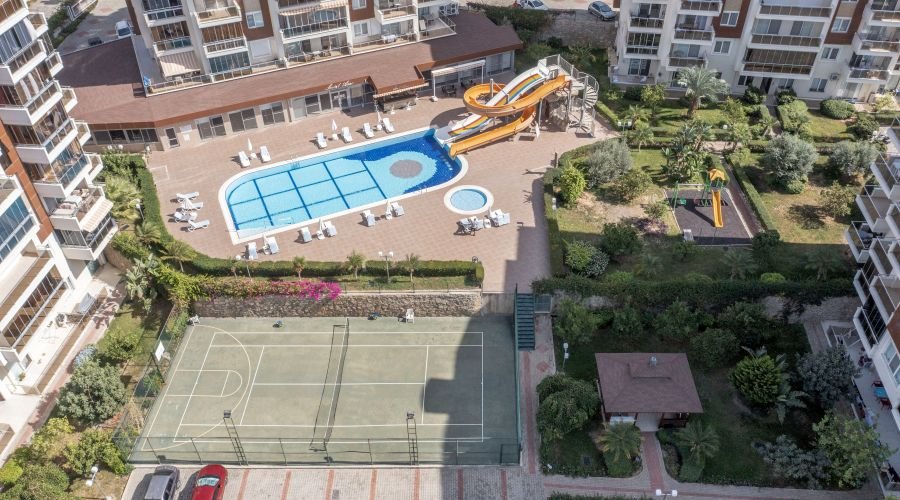Авсаллар — популярный курортный район Аланьи, известный своими песчаными пляжами и развитой инфраструктурой. Комплекс расположен всего в 500 метрах от моря, при этом для жителей предусмотрен собственный бесплатный пляж, что является значительным преимуществом. Район идеально подходит как для отдыха, так и для постоянного проживания.