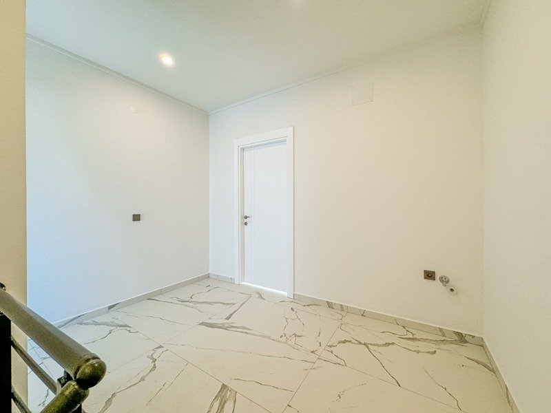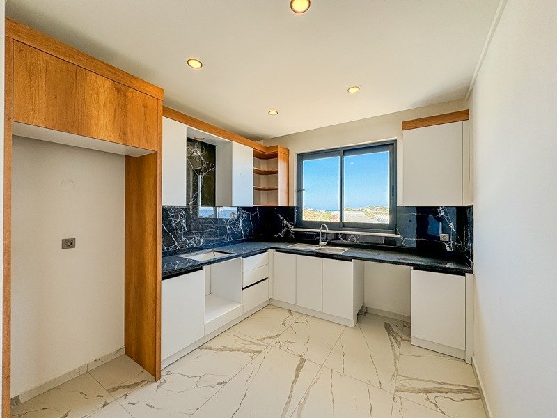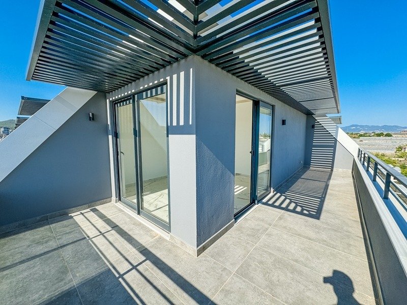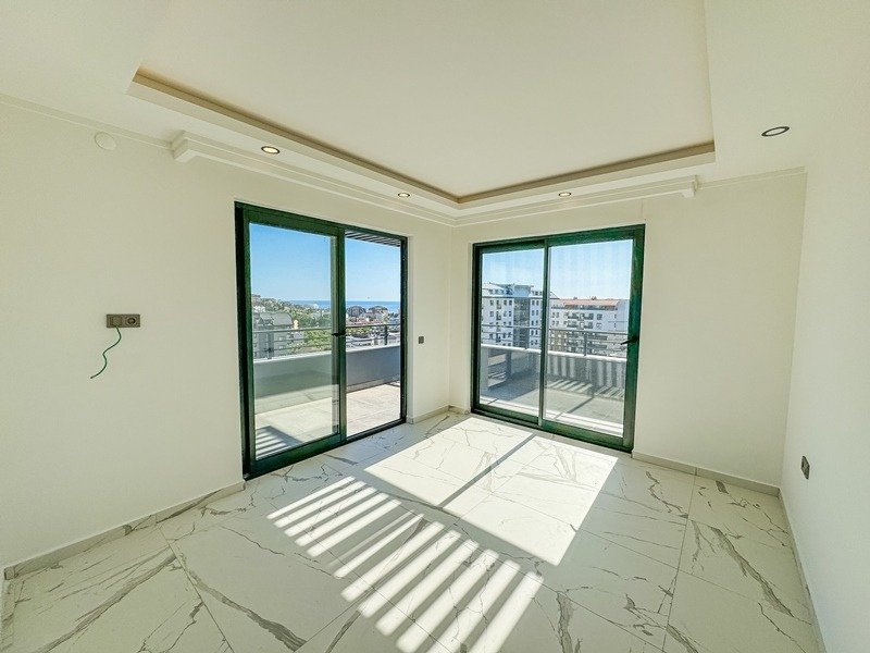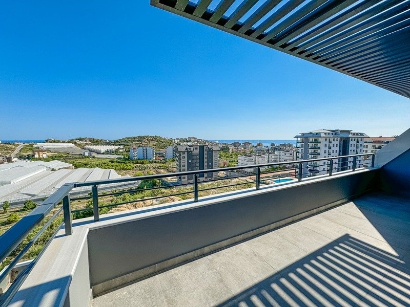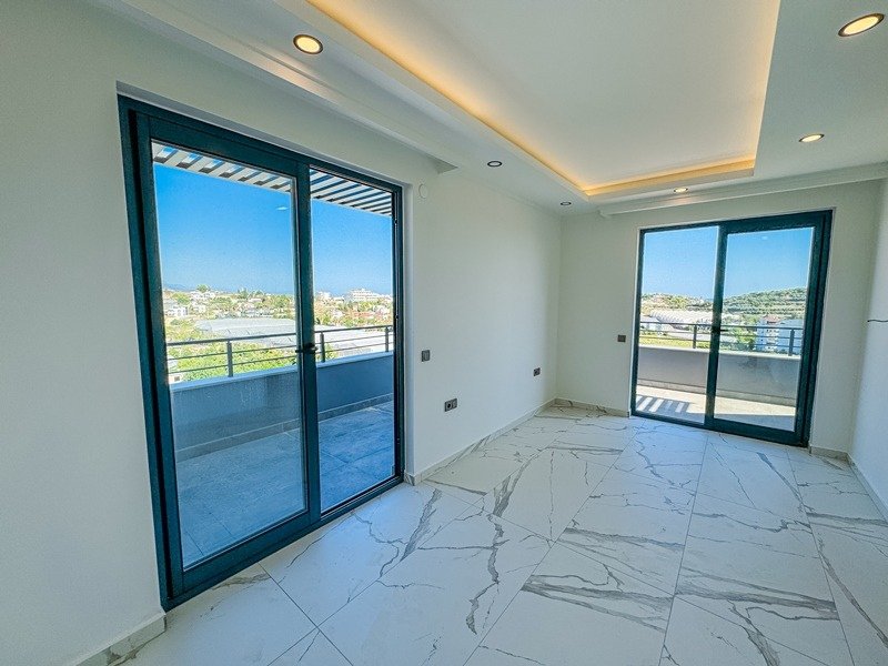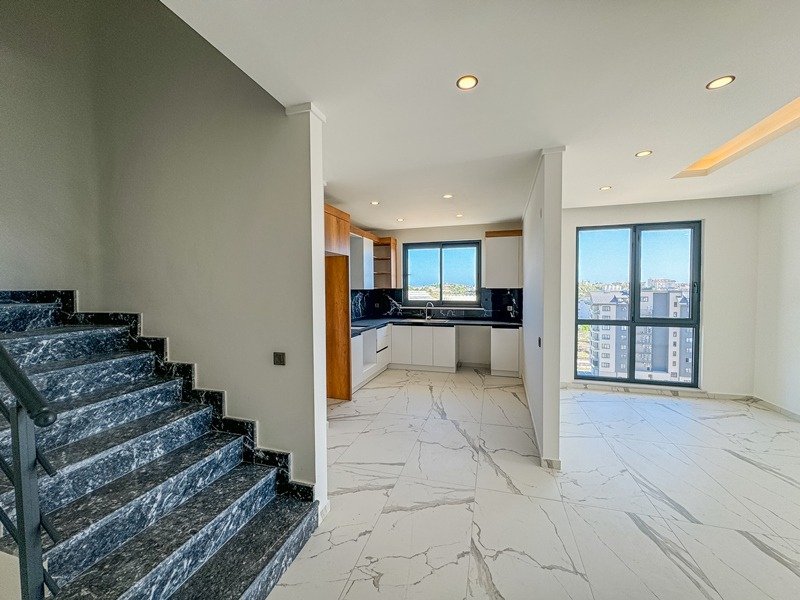 Квартира представлена в формате дуплекса без мебели, что даёт возможность реализовать индивидуальный дизайн интерьера. Планировка включает просторную гостиную с кухней открытого типа, три спальни, три ванные комнаты с санузлами и три балкона. Из окон открываются виды на бассейн, сад, природу и море, что делает квартиру особенно привлекательной.