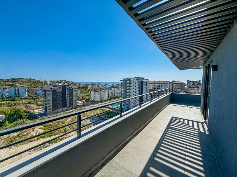 Впечатляющий по площади двухуровневый дуплекс планировки 3+1 общей площадью 183 м², расположенный на 9 этаже современного жилого комплекса 2024 года постройки. Квартира отличается редким сочетанием просторных помещений, продуманной планировки и панорамных видов сразу на несколько сторон света. Ориентация на юг, запад и восток обеспечивает максимальное естественное освещение в течение всего дня.