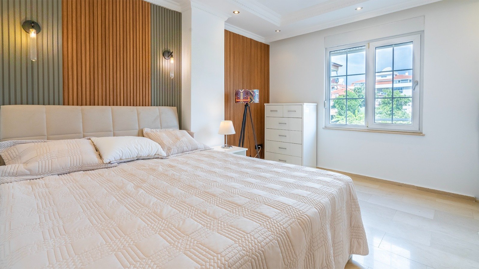 Светлая квартира планировки 1+1 площадью 70 м² расположена на 2 этаже в небольшом ухоженном комплексе. Квартира полностью меблирована, интерьер выполнен в современном спокойном стиле, видно, что жильё делали для себя — всё аккуратно, продуманно и в хорошем состоянии. Главное преимущество объекта — большая терраса с приятным видом на город, которая добавляет ощущение простора и делает квартиру особенно комфортной для жизни.