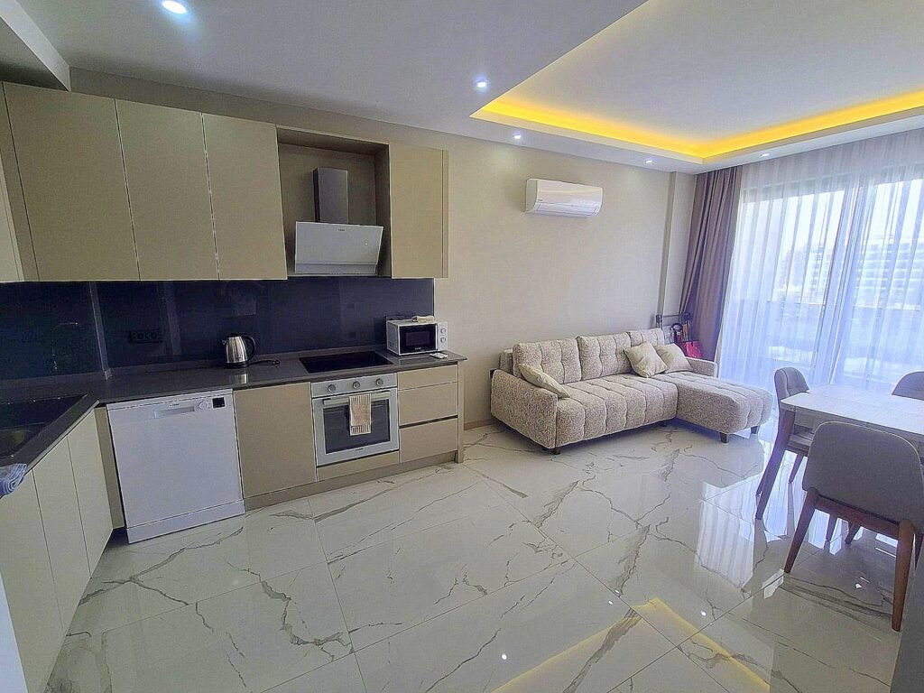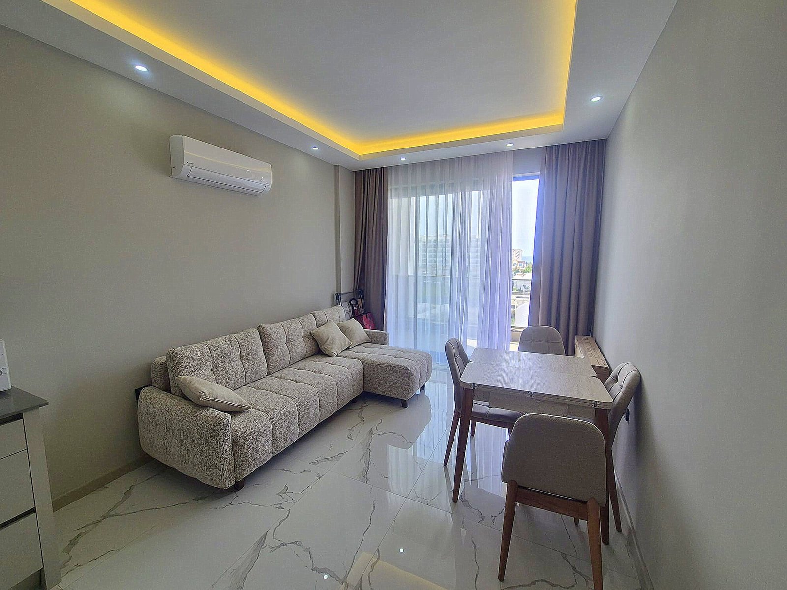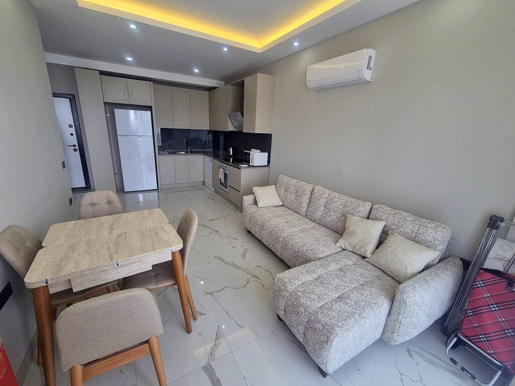 Сдаётся комфортная квартира планировки 1+1 на 3 этаже, полностью меблированная и укомплектованная всей необходимой техникой. В квартире есть кондиционеры в гостиной и спальне, стиральная машина, а также всё для жизни — посуда, постельное бельё и полотенца. С балкона открывается приятный вид на бассейн и немного видно море, что создаёт атмосферу настоящего отдыха.
