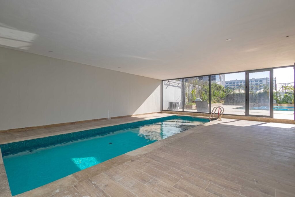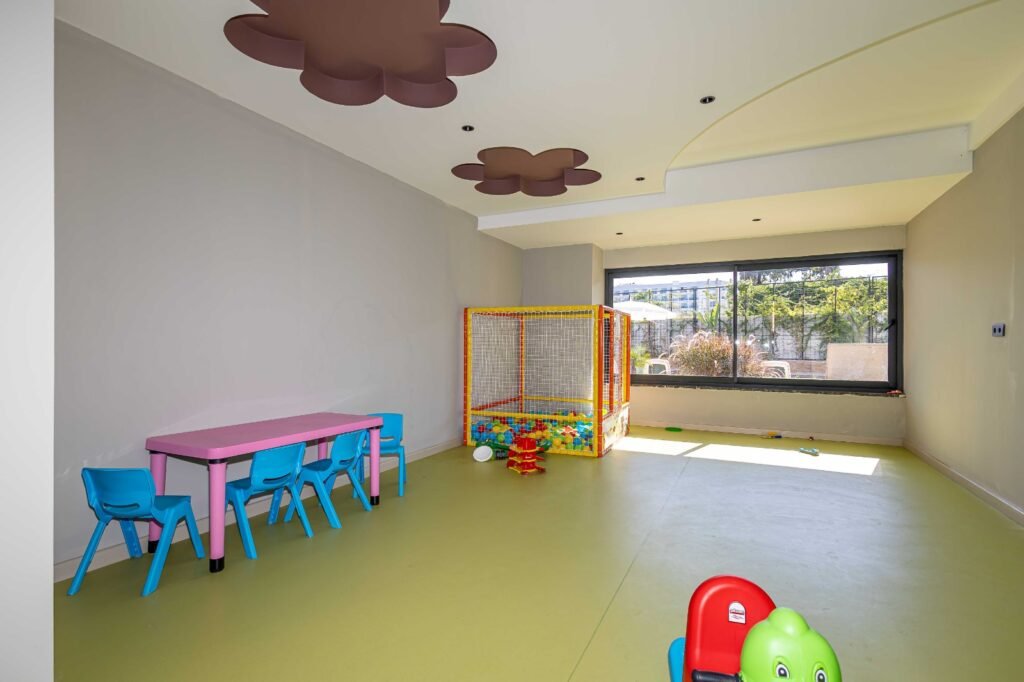 Комплекс предлагает всё необходимое для комфортного проживания: открытый и крытый бассейны, хамам, сауну и современный фитнес-зал. Также есть детская площадка, игровая комната и ухоженные зоны отдыха с камелиями. Для удобства жильцов предусмотрен генератор. Территория аккуратная и приятная для проживания.