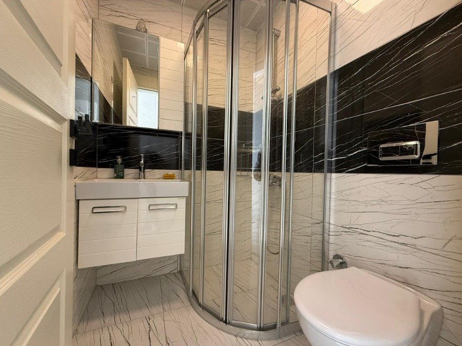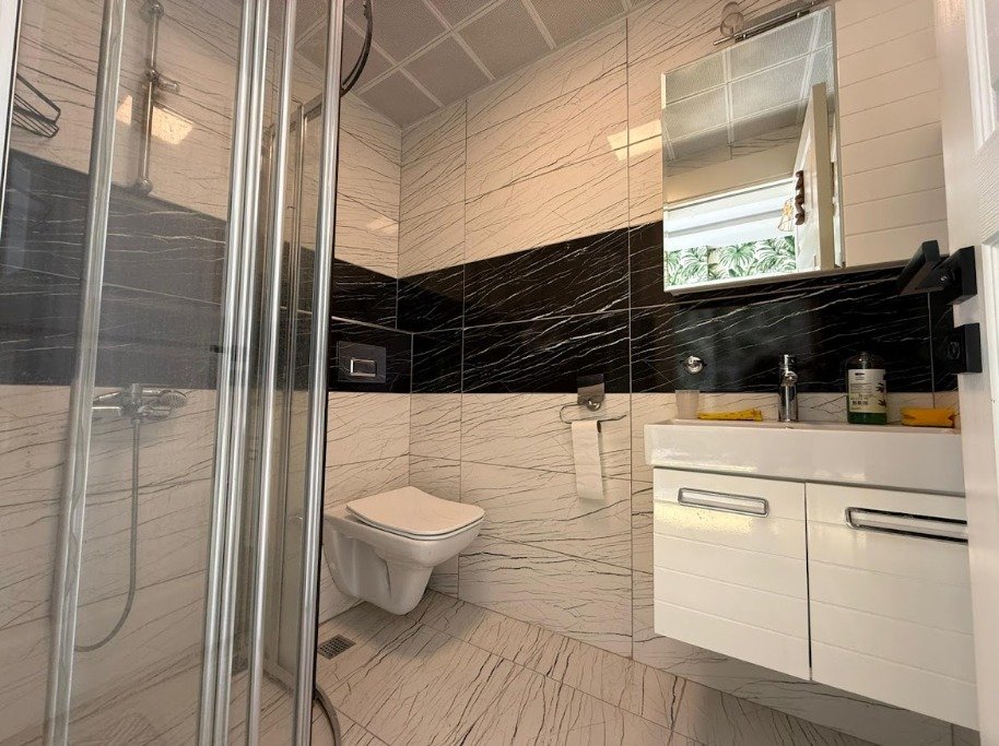 Квартира расположена на 5 этаже 5-этажного здания и имеет продуманную планировку: возможность разделения на 2+1 + студию, 3 ванные комнаты / 3 WC, отдельная студия с собственным санузлом, полноценная квартира 2+1 на уровне выше, полностью меблирована, редкий формат, который даёт гибкость в использовании.