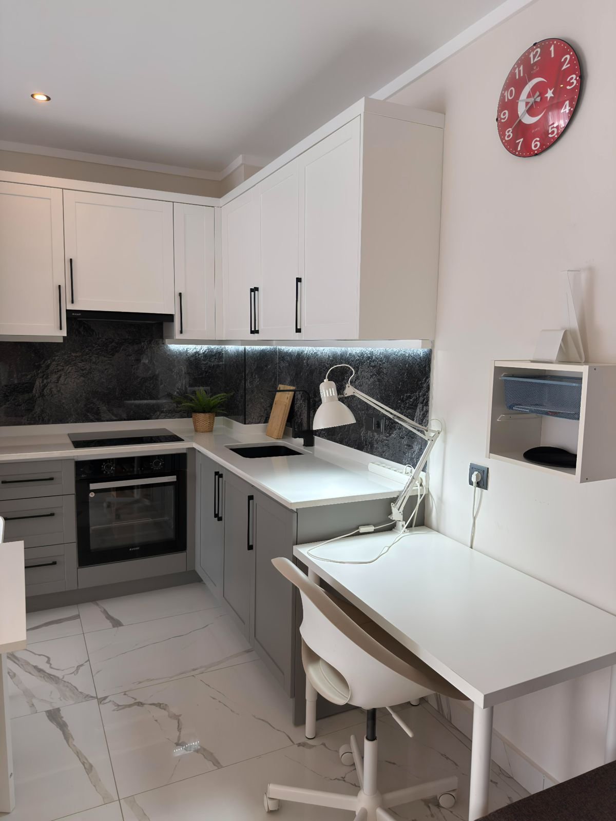 Сдается в аренду современная квартира 1+1 площадью 55 м² на 2 этаже в современном жилом комплексе Vega Style Residence в районе Каргыджак. Квартира полностью меблирована и готова к проживанию — отличный вариант для комфортного отдыха у моря. Здесь с лёгкостью разместятся до 4 человек: в спальне установлена двуспальная кровать, в гостиной — раскладной диван. Уютная атмосфера, продуманная планировка и близость к морю делают этот вариант особенно привлекательным.