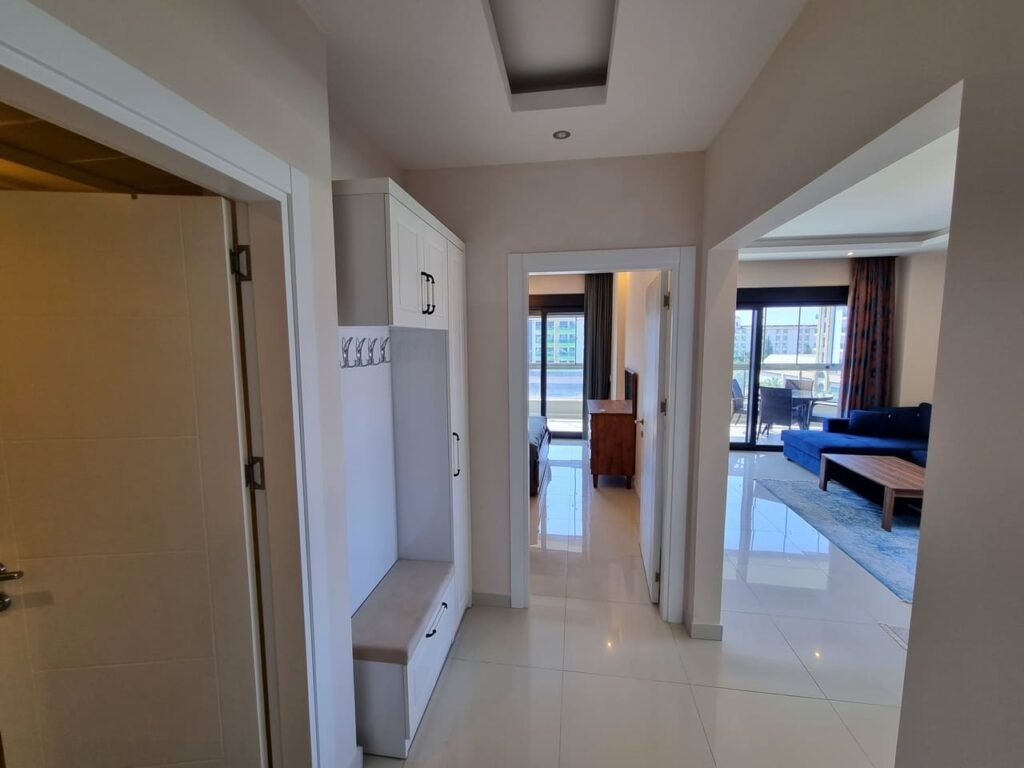 Апартаменты расположены на 3 этаже. Планировка 1+1 имеет площадь 70 квадратных метров и включает в себя совмещенную с кухней гостиную комнату, спальню, ванную комнату и балкон с видом на окрестности Махмутлара, территорию комплекса, бассейн и горы Торос. Апартаменты полностью меблированы, укомплектованы бытовой техникой и готовы встречать новых хозяев.