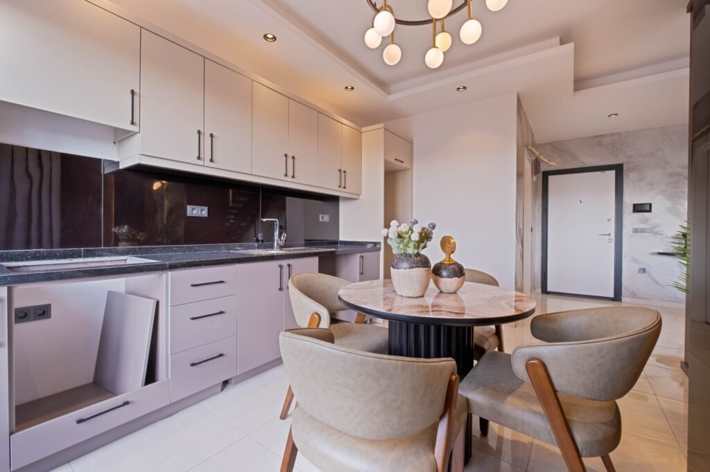 Квартира представляет собой просторный дуплекс 2+1 общей площадью 110 м². Планировка включает: светлую гостиную с кухней, 2 спальни, ванные комнаты, балконы и дополнительное пространство второго уровня. Просторная планировка позволяет удобно организовать жилое пространство и создать уютную атмосферу.