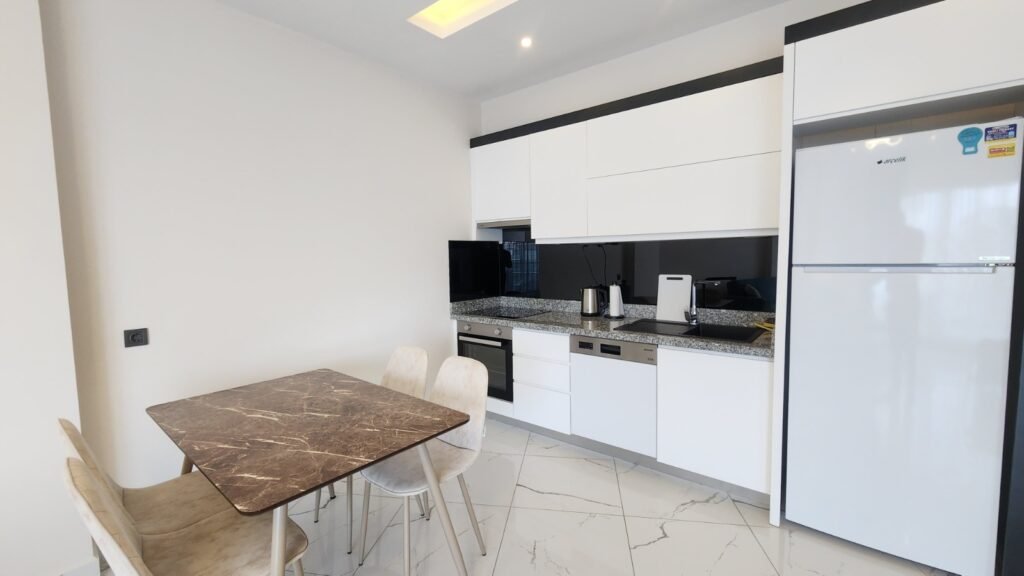 Стильная и полностью меблированная квартира формата 1+1 площадью 65 м², расположенная на 3 этаже современного жилого комплекса. Просторный балкон с видом на море и горы , качественная отделка и вся необходимая техника — всё готово, чтобы вы получили максимум удовольствия от своего отпуска у моря.