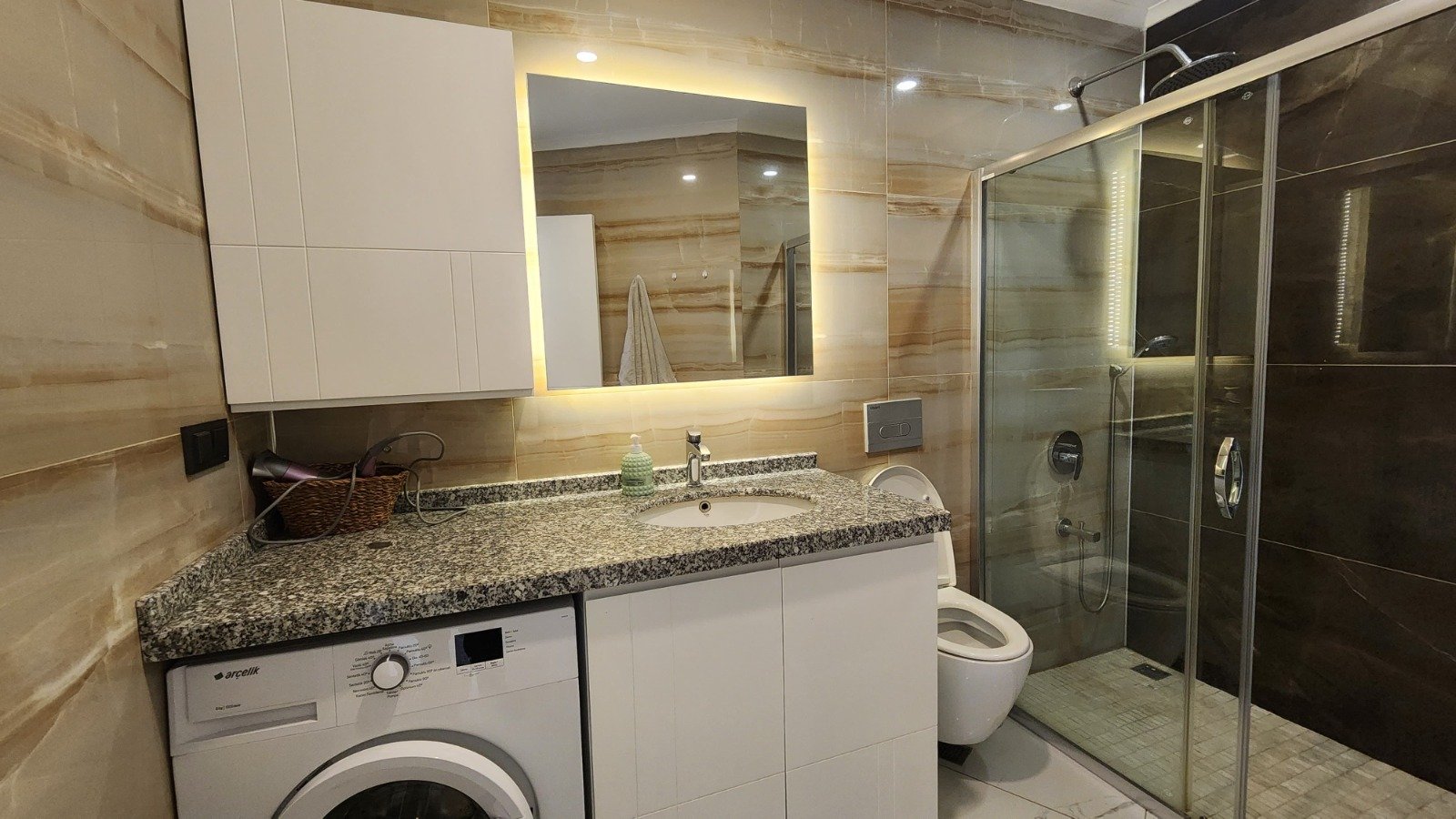 Стильная и полностью меблированная квартира формата 1+1 площадью 65 м², расположенная на 3 этаже современного жилого комплекса. Просторный балкон с видом на море и горы , качественная отделка и вся необходимая техника — всё готово, чтобы вы получили максимум удовольствия от своего отпуска у моря.