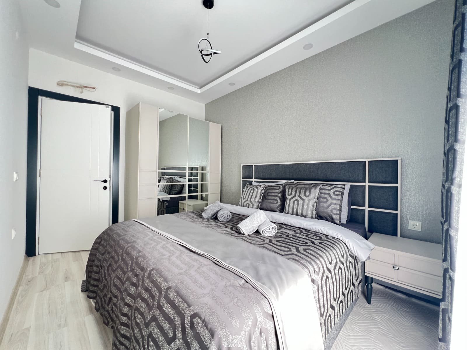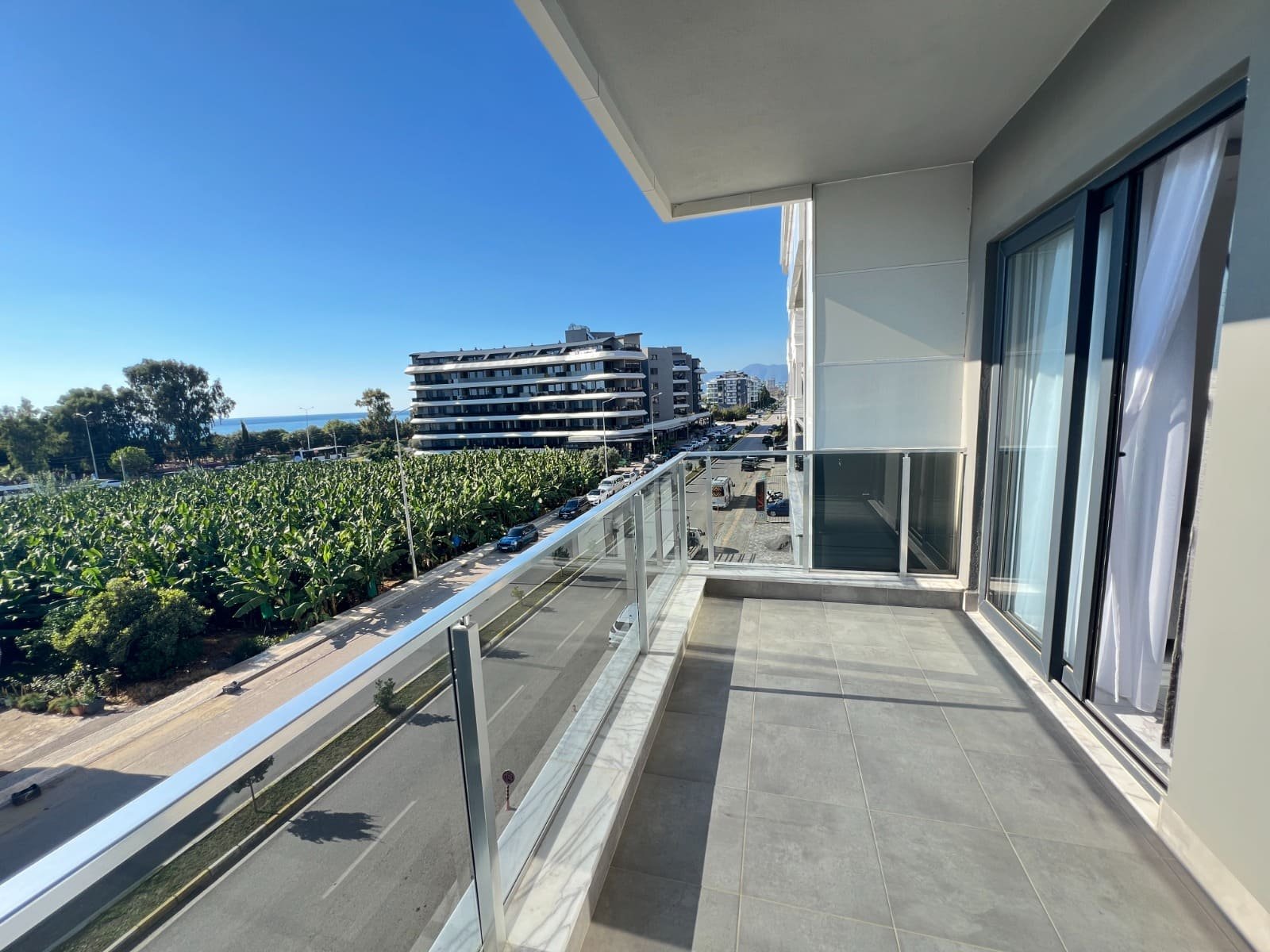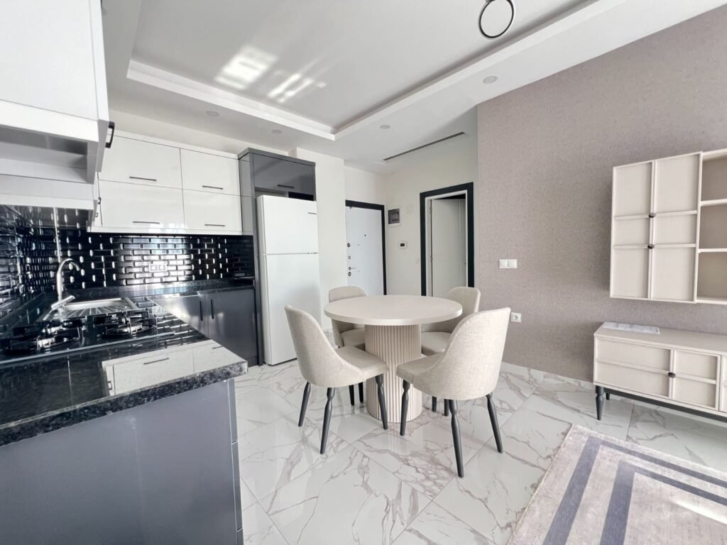 Temiz bir sitenin ikinci katında bulunan, 50 m²'lik, aydınlık ve modern bir 1+1 daireye sahip olacaksınız. Daire yepyeni, hiç oturulmamış. Kısmen eşyalı; ana mobilyalar zaten kurulu, bu yüzden zevkinize uygun birkaç beyaz eşya satın almanız yeterli. Güneye bakan konumu bol ışık sağlar ve denizin, yemyeşil yamaçların ve muz bahçelerinin panoramik manzarası, evinizde ferahlık ve doğa hissi yaratır.