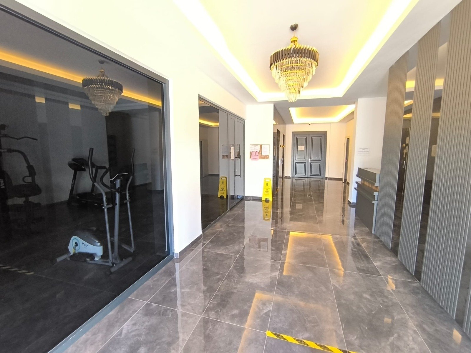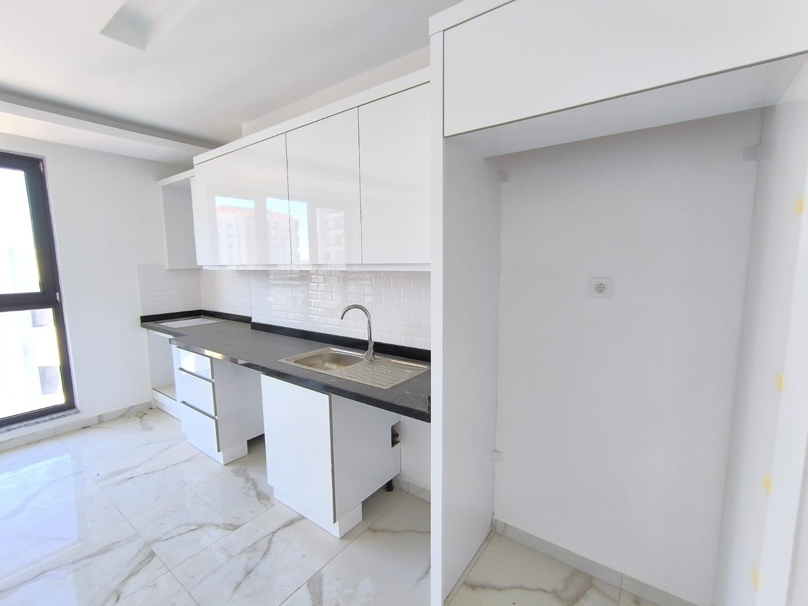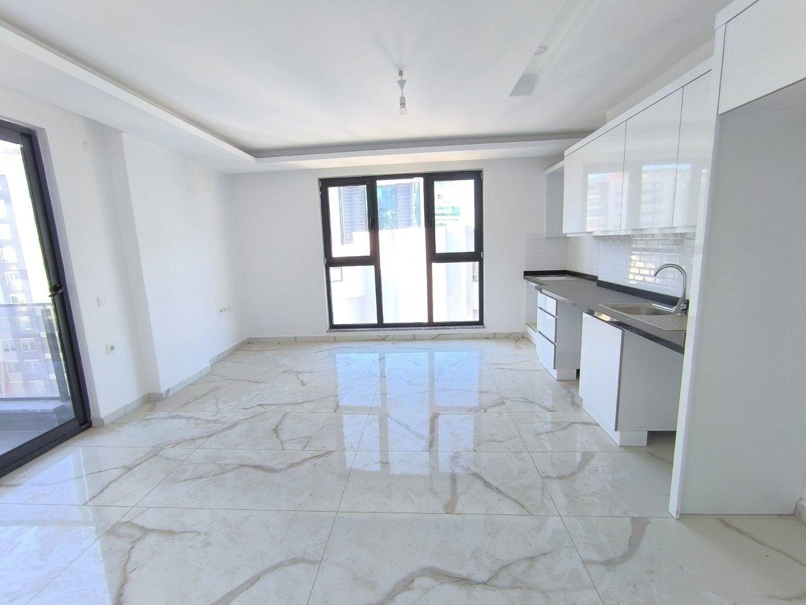 Квартира площадью 100 м² отличается удобной современной планировкой с отдельными спальнями и просторной гостиной с кухонной зоной. Юго-западная сторона обеспечивает мягкое дневное солнце и красивые закаты. Выполнена качественная чистовая отделка: керамические полы, встроенный кухонный гарнитур, полностью оборудованные ванные комнаты с сантехникой, алюминиевые окна и стальная входная дверь. Установлены межкомнатные двери, светодиодное потолочное освещение и точечные светильники. Проведены интернет и кабельное телевидение. Большие окна делают пространство светлым и визуально ещё более просторным.
