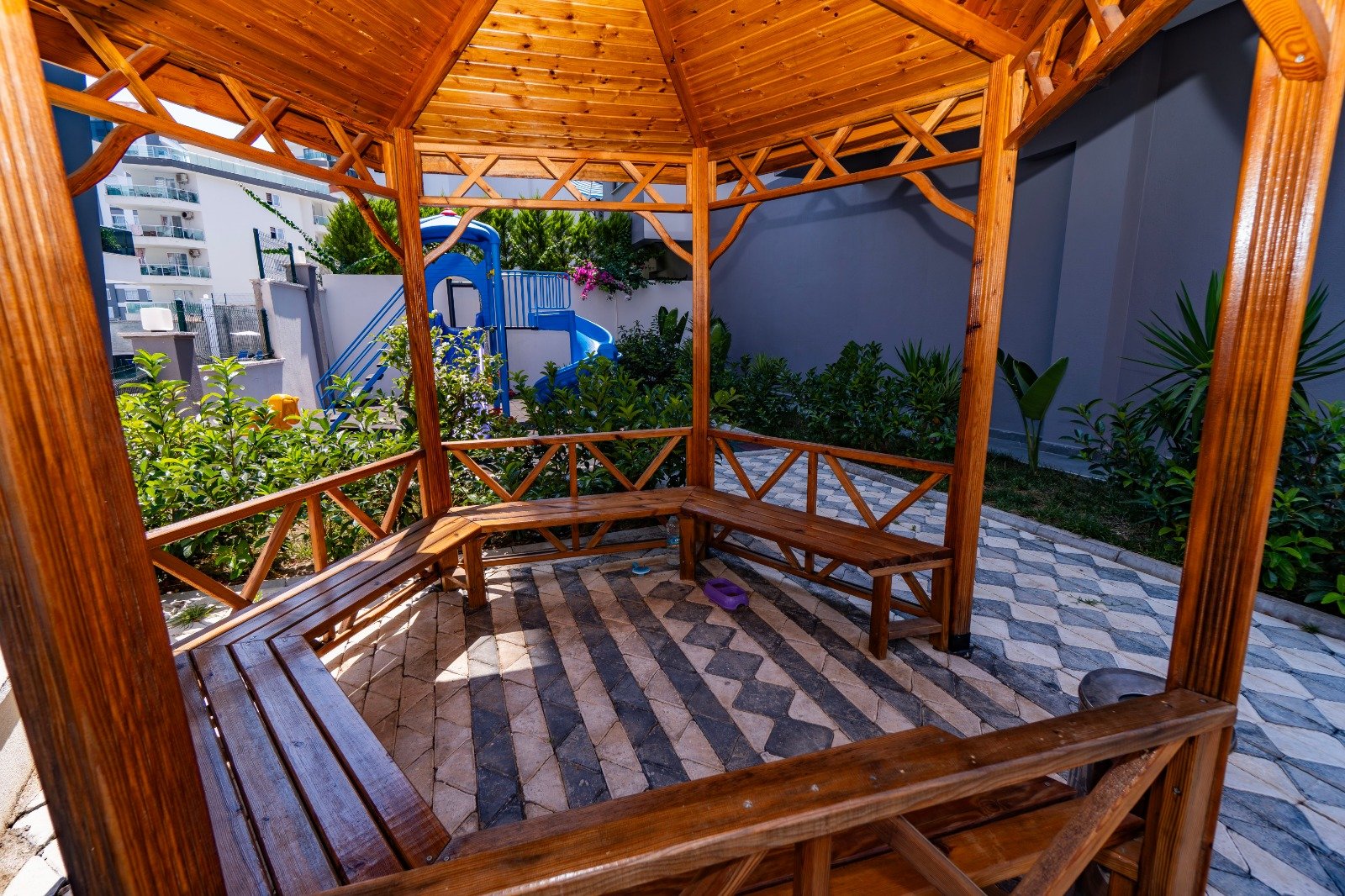 Современный камерный проект на участке 1550 м², состоящий из одного 10-этажного блока всего на 54 квартиры, что создаёт спокойную атмосферу проживания без плотной застройки. На территории расположен открытый бассейн, зелёные зоны отдыха и беседки, фитнес-зал, сауна и турецкий хамам. Для семей предусмотрена детская игровая площадка, работает консьерж, установлены камеры видеонаблюдения. Есть открытая парковка, лифт, генератор бесперебойного питания и благоустроенные зоны барбекю.