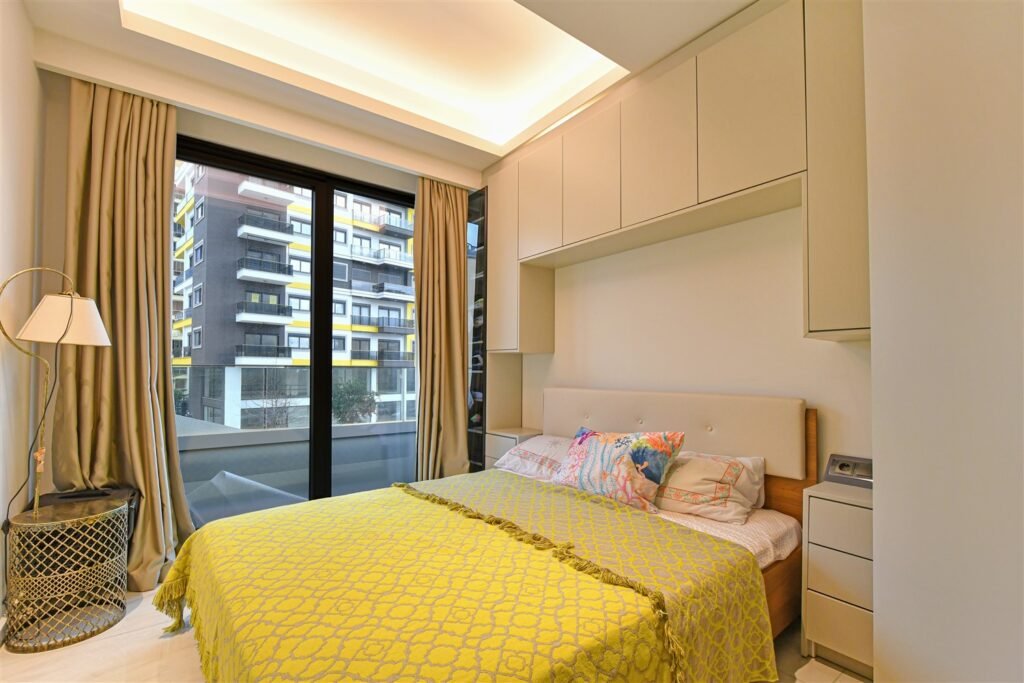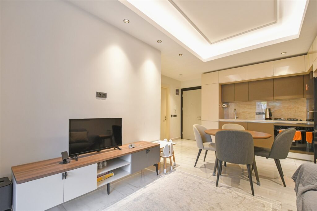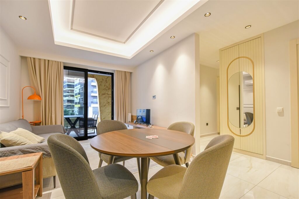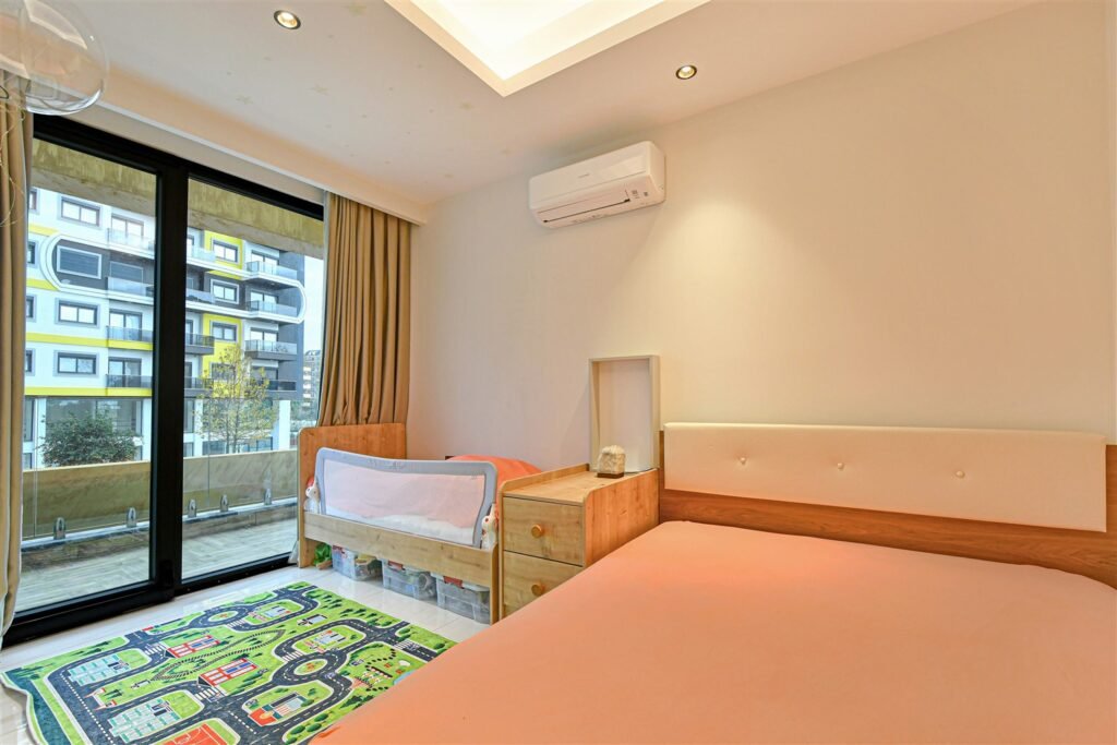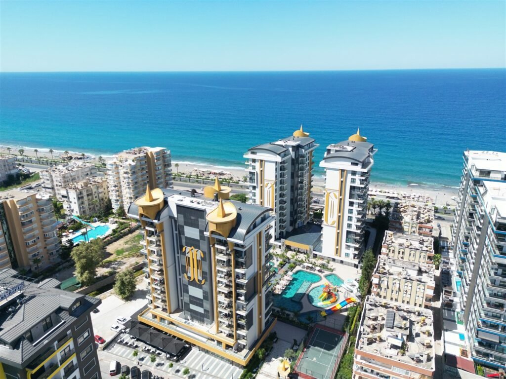 Просторная меблированная квартира планировки 2+1 в одном из самых престижных и масштабных комплексов района. Дом новый, построен в 2023 году, расположен прямо на первой береговой линии с собственным оборудованным пляжем и подземным переходом к морю. Это формат жизни, где всё необходимое находится буквально в нескольких шагах — от моря до городской инфраструктуры. Квартира находится на 1 этаже, что особенно удобно для семей с детьми и тех, кто ценит лёгкий доступ без ожидания лифта.