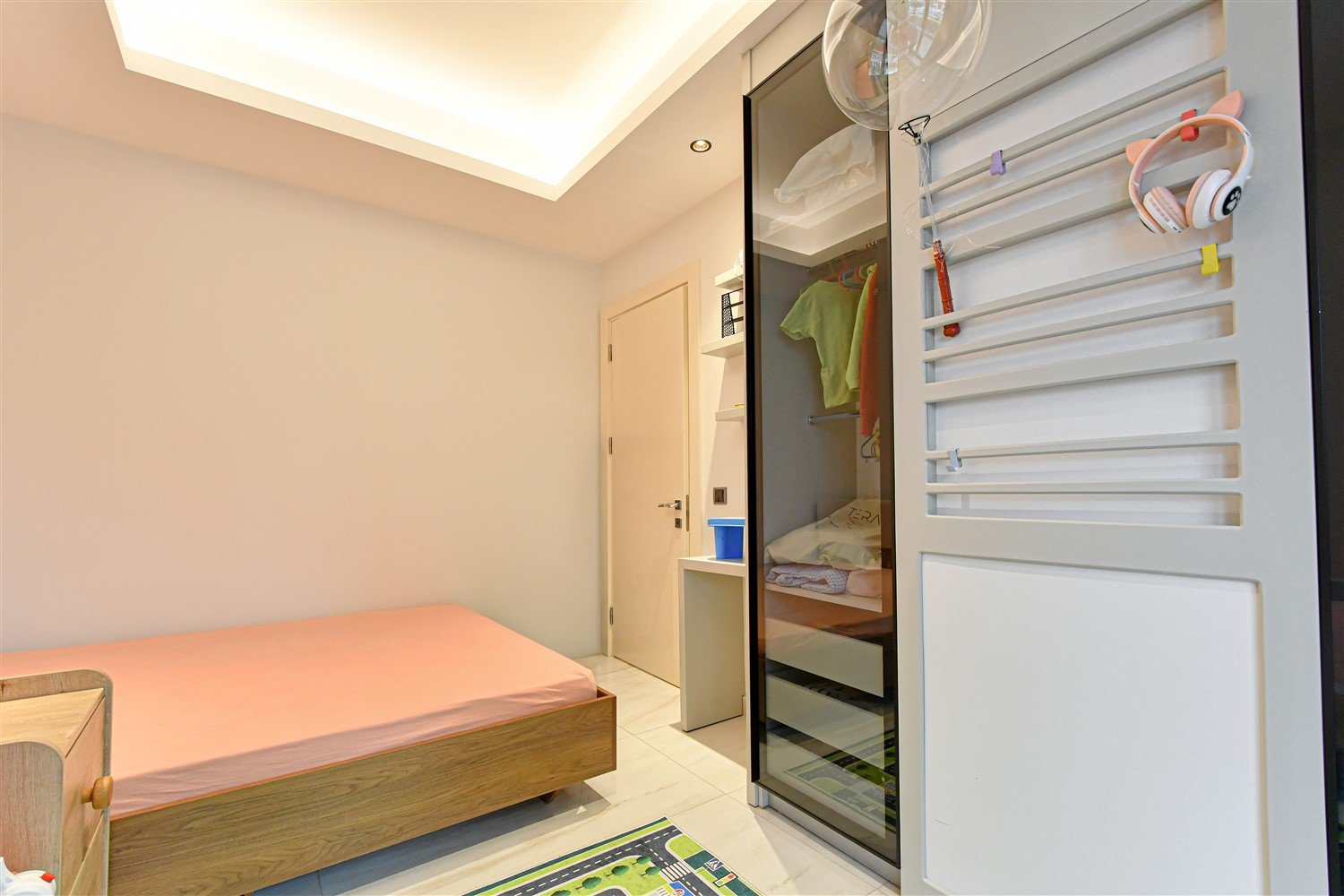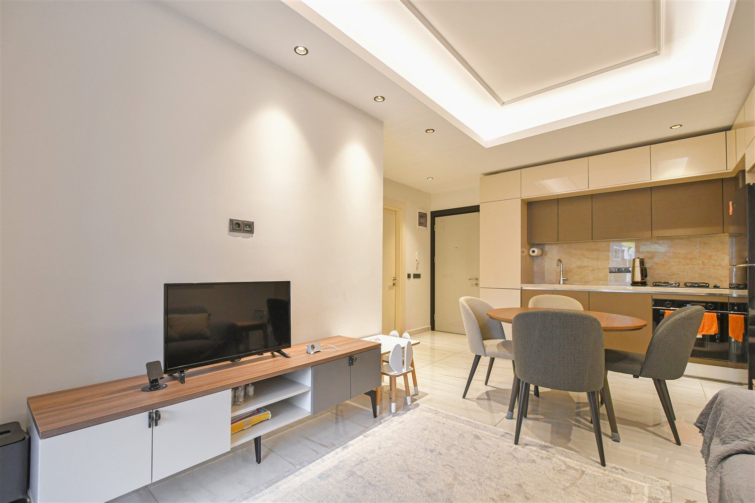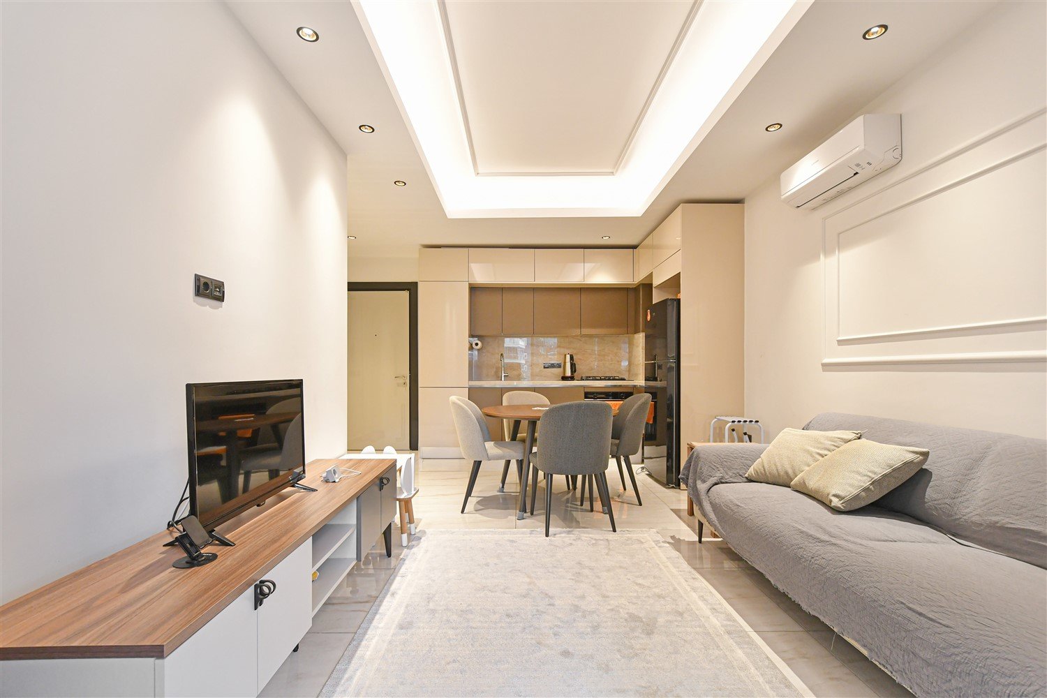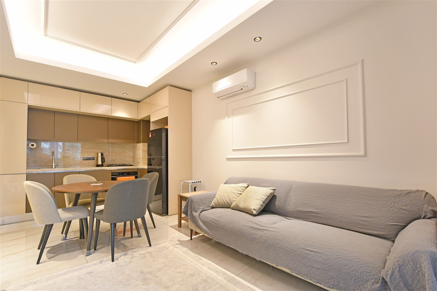 Просторная меблированная квартира планировки 2+1 в одном из самых престижных и масштабных комплексов района. Дом новый, построен в 2023 году, расположен прямо на первой береговой линии с собственным оборудованным пляжем и подземным переходом к морю. Это формат жизни, где всё необходимое находится буквально в нескольких шагах — от моря до городской инфраструктуры. Квартира находится на 1 этаже, что особенно удобно для семей с детьми и тех, кто ценит лёгкий доступ без ожидания лифта.