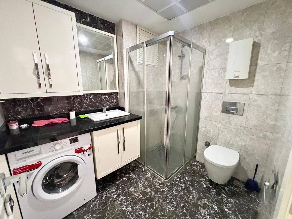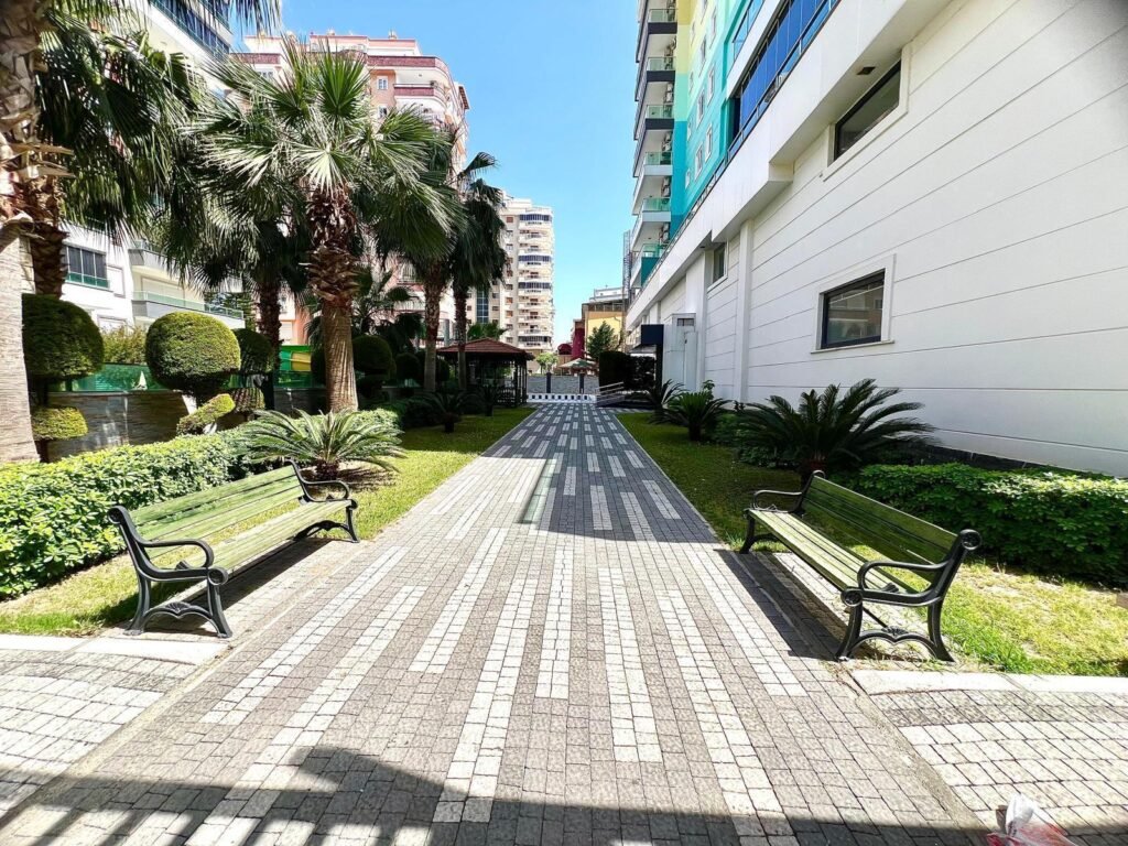 Квартира находится на центральной улице Махмутлара. Это оживлённый район с максимально развитой инфраструктурой: прямо у дома расположены популярные магазины и торговые точки, включая Burger King, большой Migros и LC Waikiki. По субботам за домом проходит фермерский базар со свежими фруктами и овощами. До моря всего 100 метров — буквально пара минут пешком до благоустроенного пляжа и набережной.