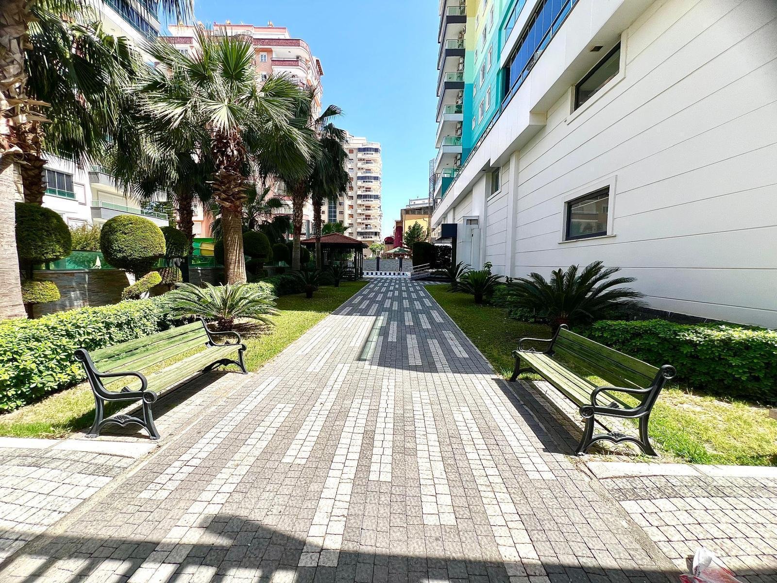 Квартира находится на центральной улице Махмутлара. Это оживлённый район с максимально развитой инфраструктурой: прямо у дома расположены популярные магазины и торговые точки, включая Burger King, большой Migros и LC Waikiki. По субботам за домом проходит фермерский базар со свежими фруктами и овощами. До моря всего 100 метров — буквально пара минут пешком до благоустроенного пляжа и набережной.