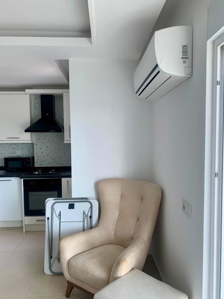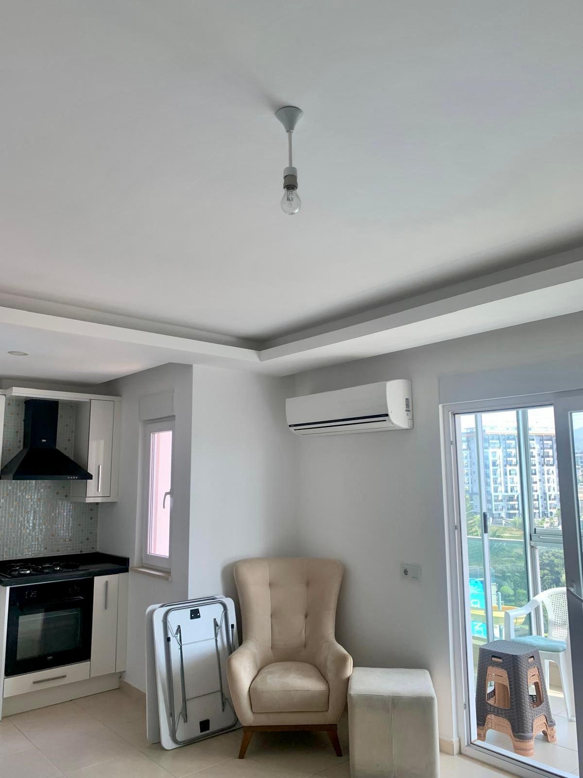 Квартира-студия площадью 45 м² расположена на 2 этаже в современном жилом комплексе в Авсалларе. Объект полностью меблирован и готов к заселению. Главная особенность — большая застеклённая терраса, которая фактически расширяет жилое пространство и делает квартиру заметно комфортнее, чем стандартные студии. Из квартиры открывается приятный вид на внутреннюю территорию комплекса. Это предложение от собственника, и по формату оно отлично подойдёт как для личного отдыха, так и для сдачи в аренду.