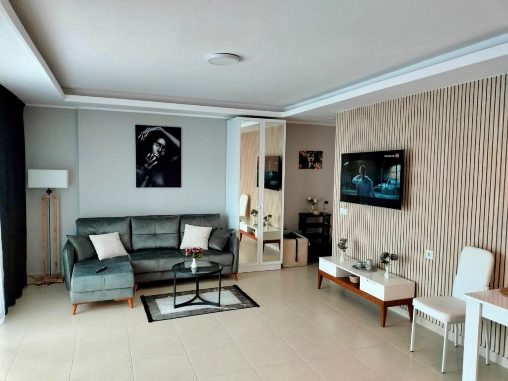Квартира находится в Авсалларе — одном из самых популярных курортных районов Аланьи. Этот район любят за более зелёную атмосферу, развитую инфраструктуру и близость к красивым песчаным пляжам. Здесь комфортно и отдыхать, и жить дольше сезона. Поблизости есть магазины, кафе, прогулочные зоны и всё необходимое для повседневной жизни.