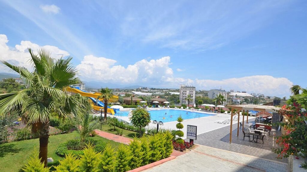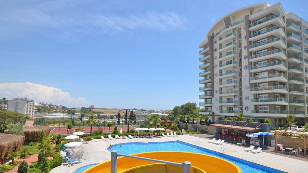 Комплекс 2017 года постройки, большой, ухоженный и действительно насыщенный по инфраструктуре. На территории есть открытый и крытый бассейны, аквапарк, SPA-зона, сауна, массажные комнаты, фитнес-центр, кинозал, конференц-зал, ресторан, кафетерий, мини-маркет, детская площадка, теннисные корты, баскетбольная и волейбольная площадки, парковка, охрана, видеонаблюдение, генератор и смотритель комплекса. Это формат полноценной резиденции с инфраструктурой на уровне хорошего курортного отеля.