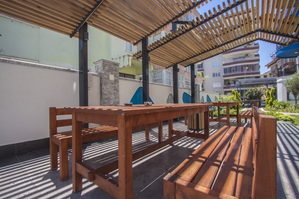 Квартира розташована на 5 поверсі. Планування 2+1 має площу 95 квадратних метрів і включає: вітальню, суміщену з кухонною зоною, 2 спальні, дві ванні кімнати і балкон з видом на гори Торос, Аланію і територію комплексі.