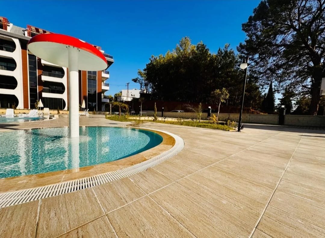 Просторную квартиру 2+1 площадью 93 м² с дополнительной террасой 50 м², второй этаж, живописные виды на бассейн и сосновый лес, полную инфраструктуру комплекса, собственный пляж и удобное расположение в одном из наиболее экологичных районов Аланьи